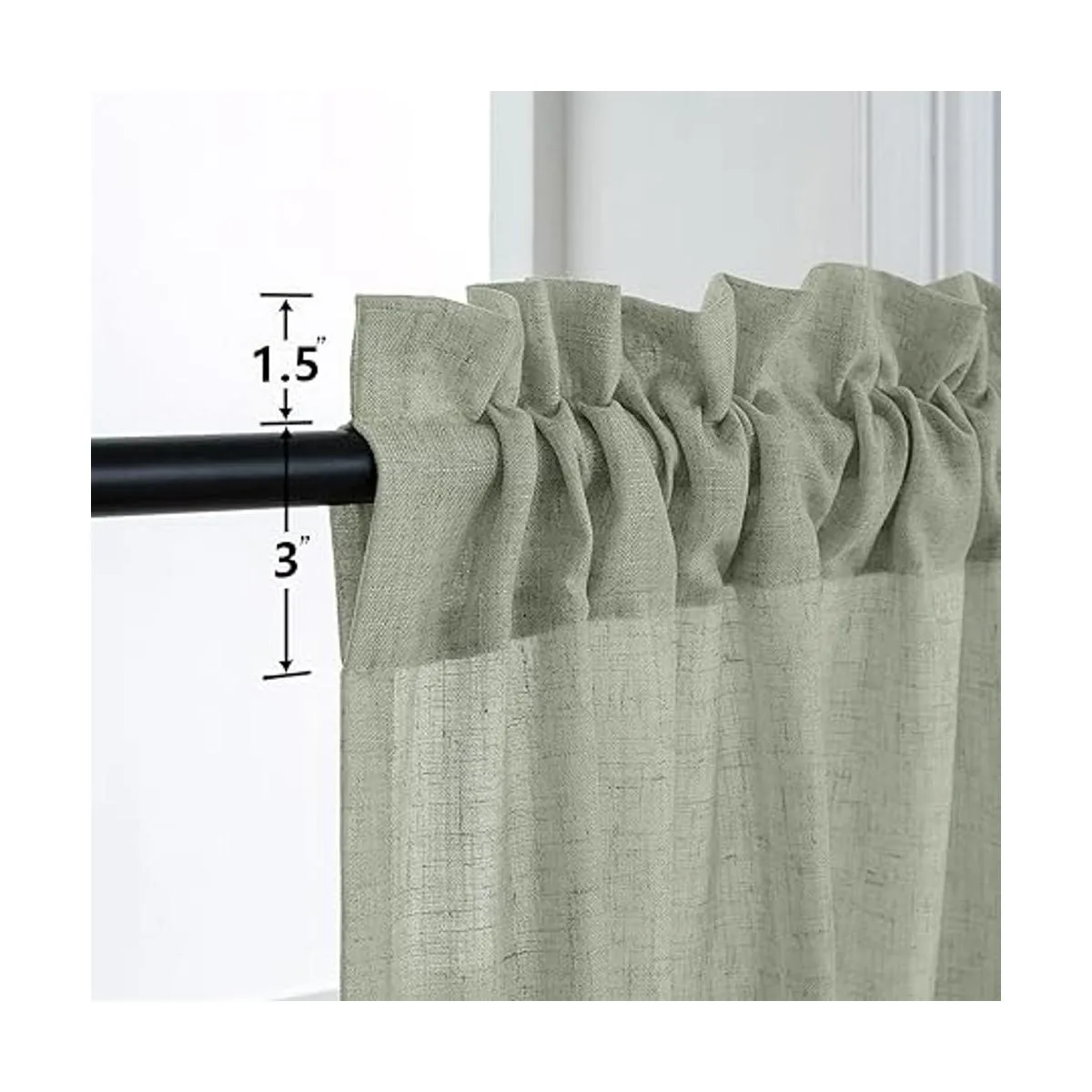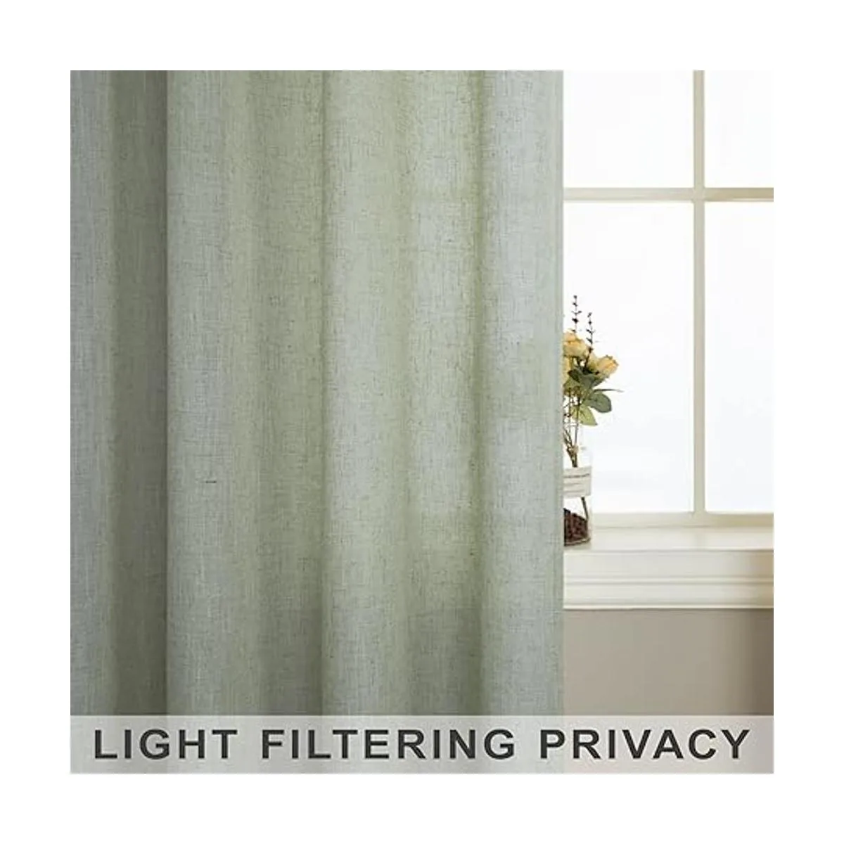 Tela de mezcla de lino suave: 20 fibras de lino hilos marrones mezcladas con poliéster crea un tejido sustancialmente suave con caída más fluida y falta de arrugas. El diseño de tejido cruzado aporta un patrón sutil y textura de lino en comparación con el transparente liso, perfecto para cualquier estilo shabby chic, casa de campo moderna, chic rústico, playa costera o estilo tradicional clásico para acentuar ventanas