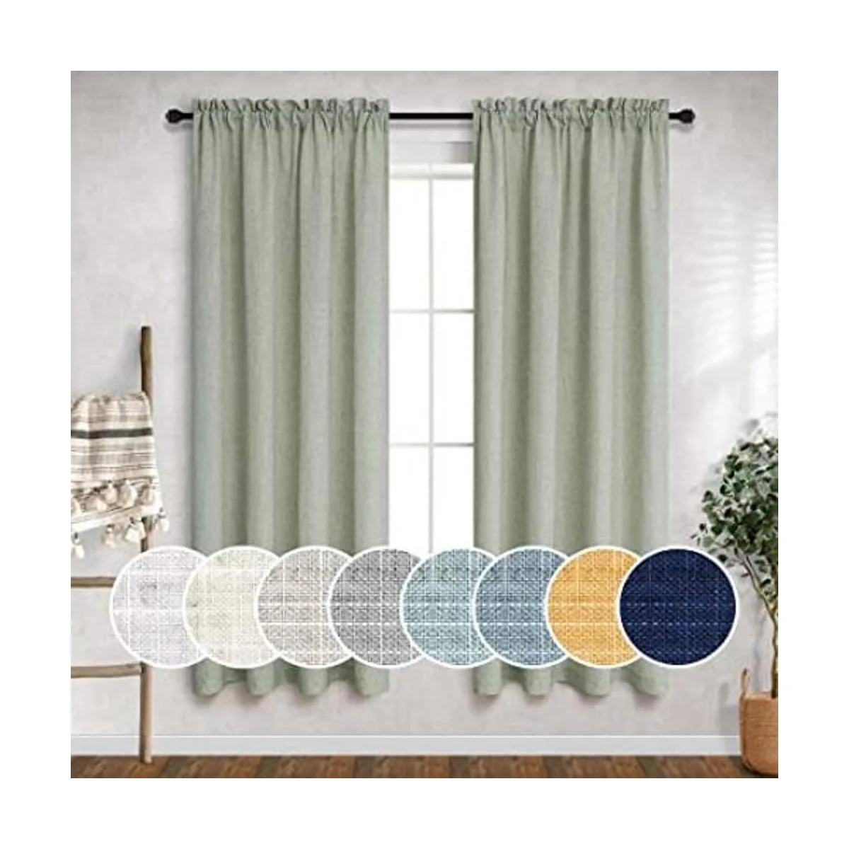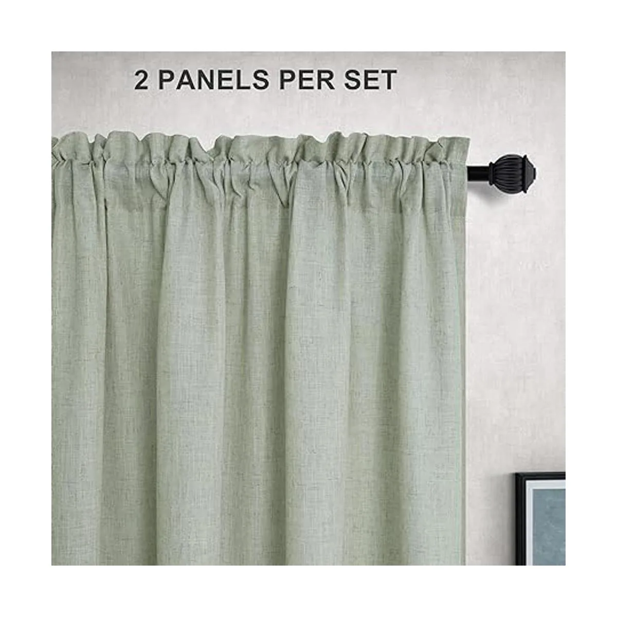 Cortinas de color verde salvia de 63 pulgadas de largo para dormitorio de niños, 2 paneles de bolsillo para barra de barra, filtro de luz, lino texturizado suave, cortina verde pálido para sala de estar, comedor, cocina, granja, decoración de habitación de niños