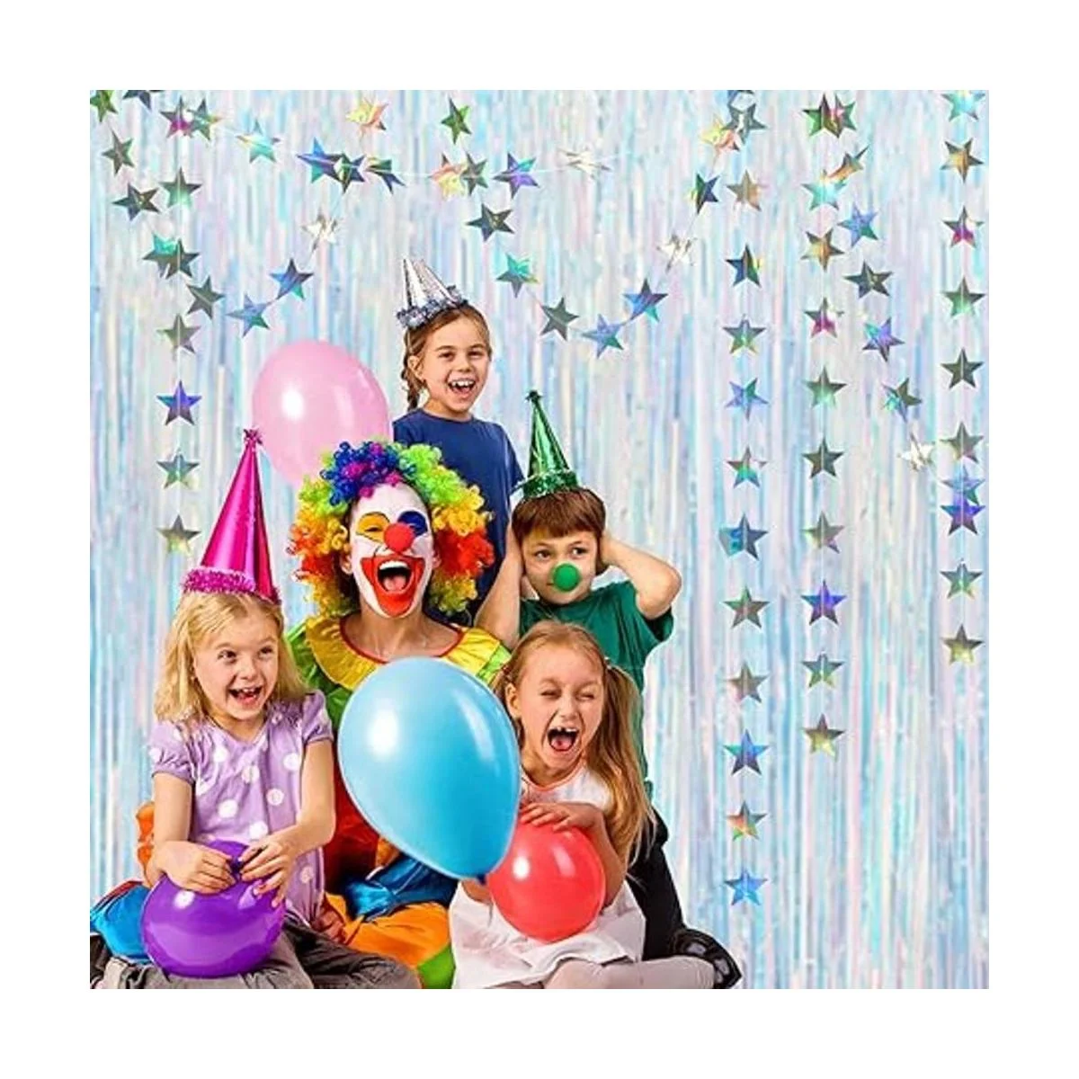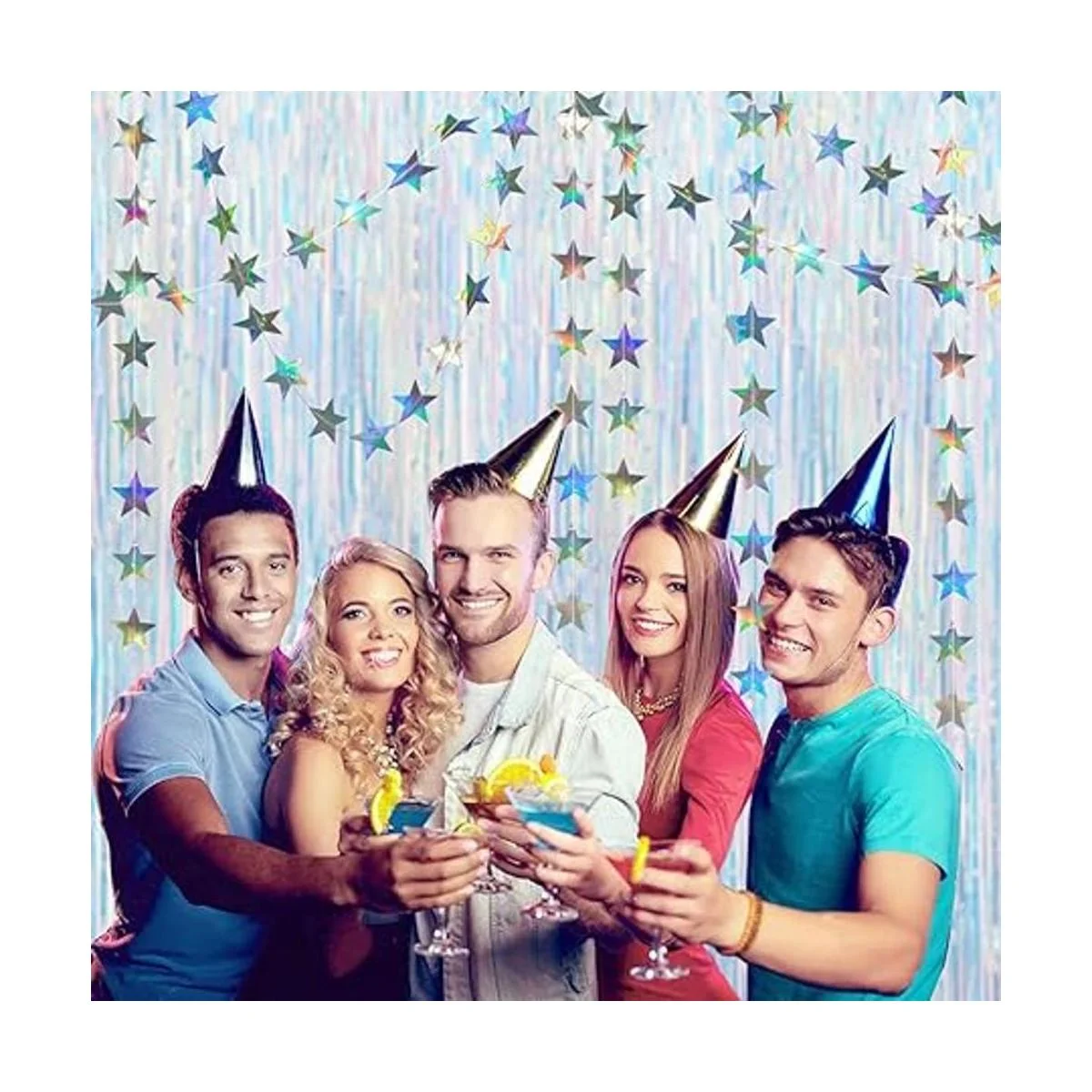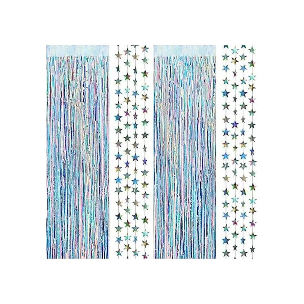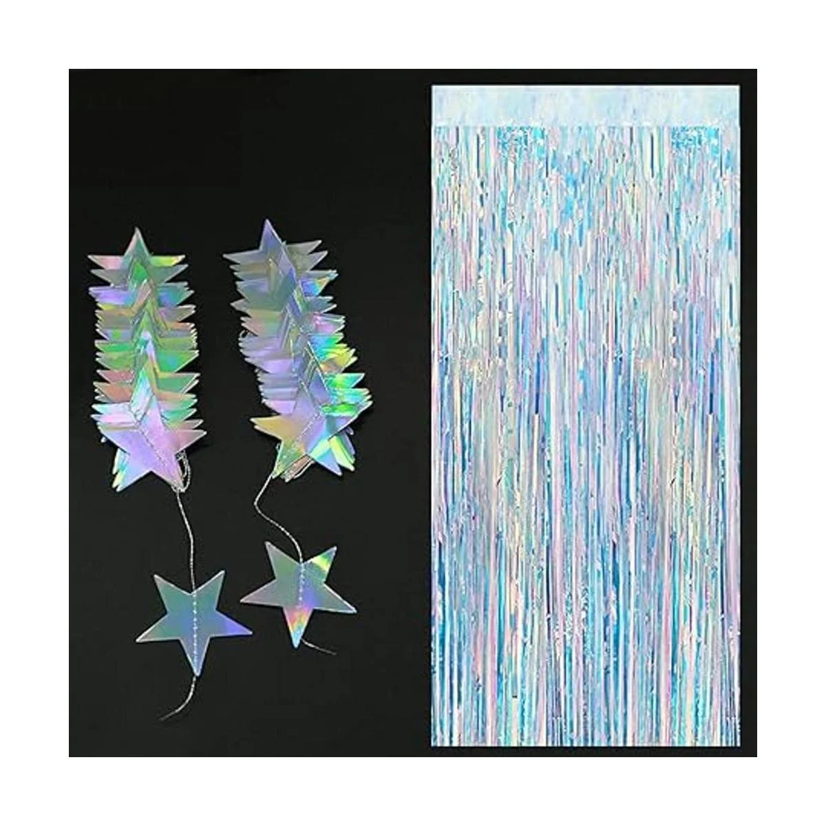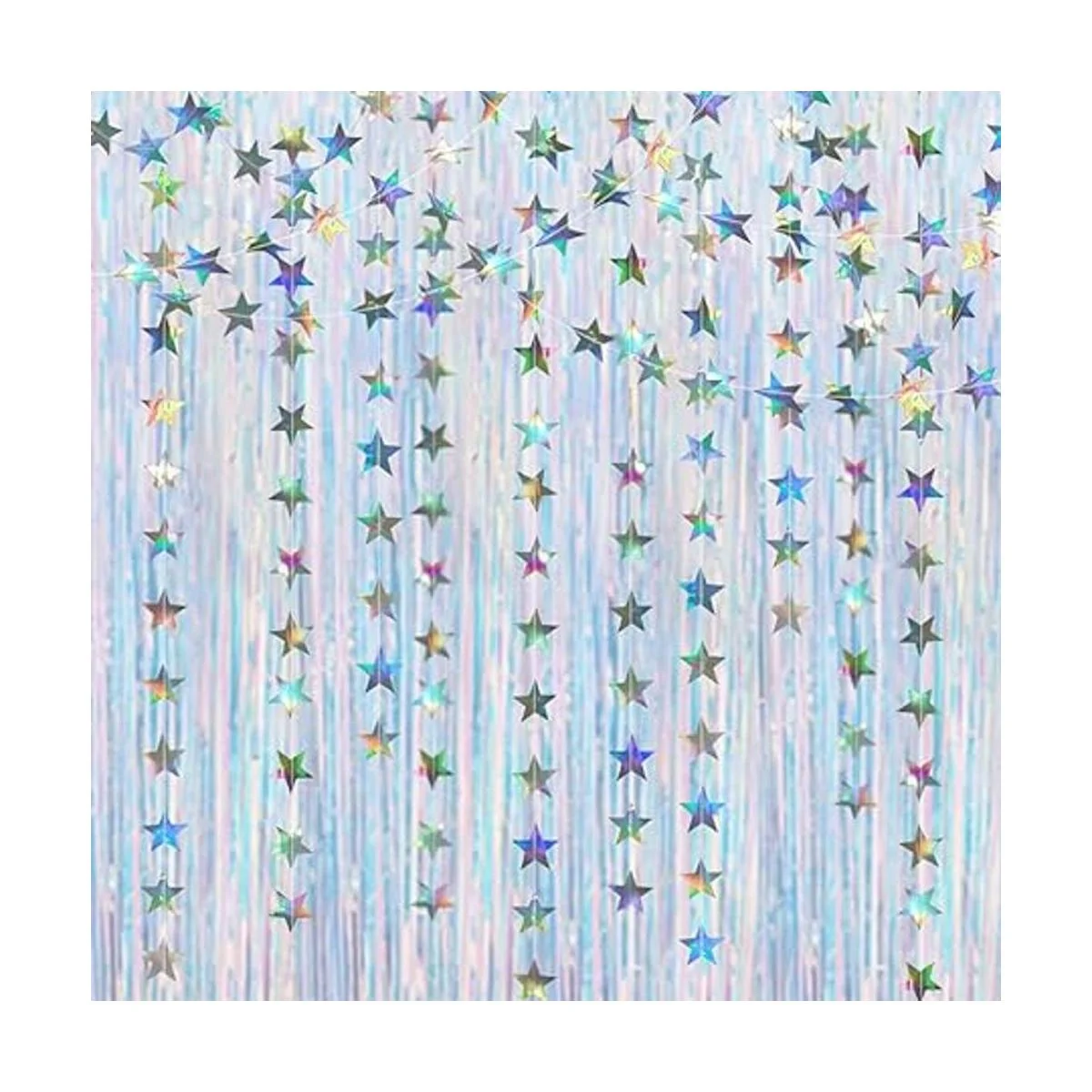 Fondo de fiesta iridiscente: este brillante kit de telón de fondo con guirnalda de estrellas es una decoración glamurosa y fresca para fiestas alegres y de euforia. La cortina y las guirnaldas de estrellas son telón de fondo para energizar el cuerpo, aumentar el espíritu y traer éxtasis.