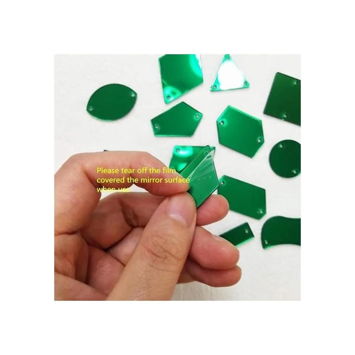 Coser en acrílico verde espejo plano con diamantes de imitación de cristal con agujero para bricolaje vestido de boda bolsos de ropa de zapatos decoración