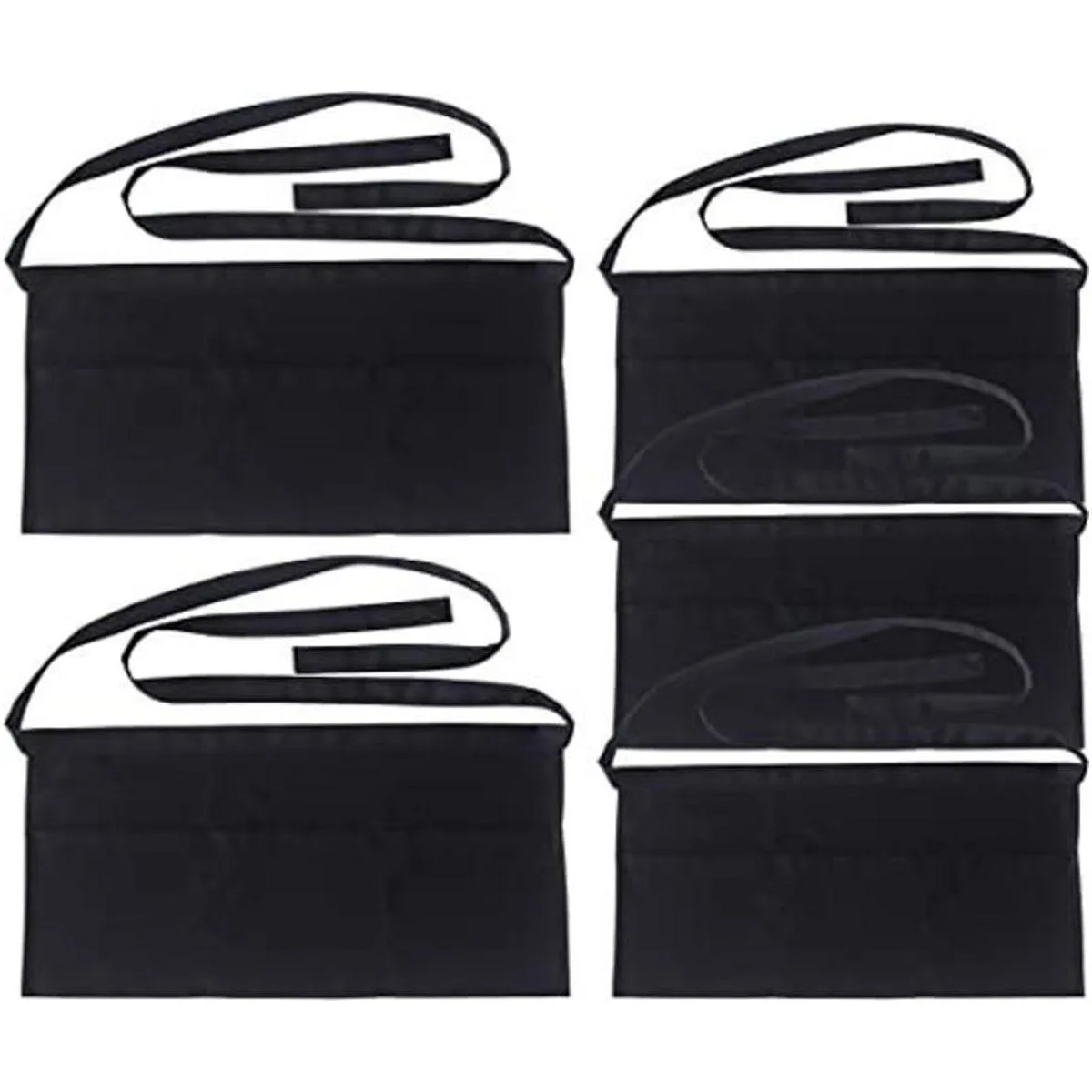 Coser UR Life 5 juegos resistente al agua 3 bolsillos grandes cintura servidor delantal cocina restaurante bistró cafetería bar bar pastelería panadería unisex medio delantales para chef, panadero, servidores, camarero, negro
