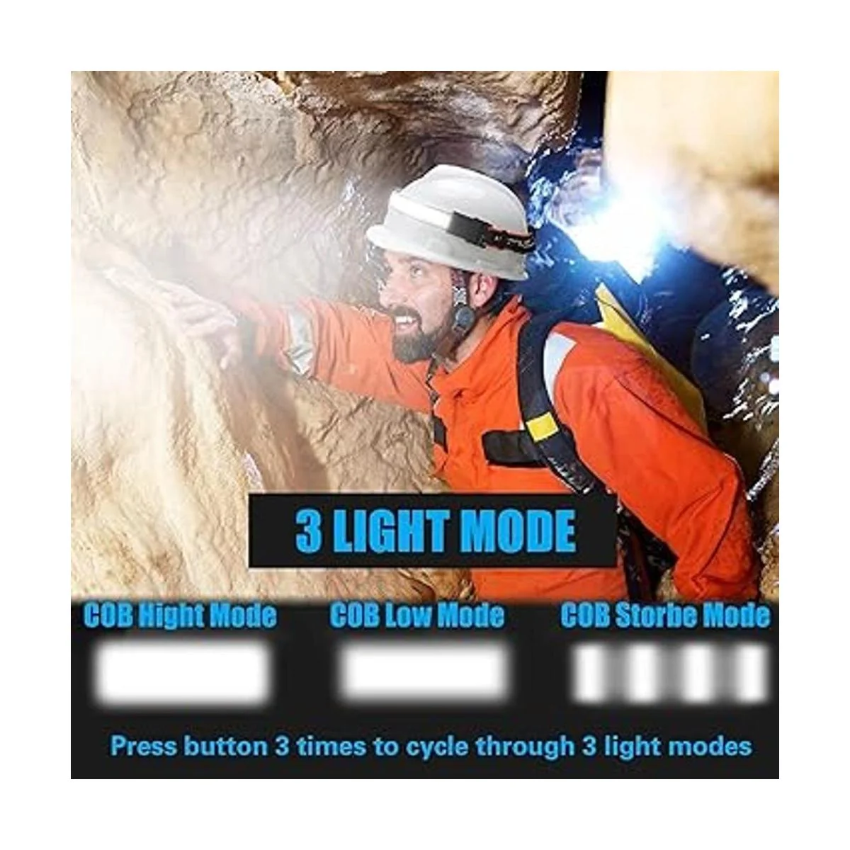 Luz indicadora de nivel de trabajo y batería para máxima comodidad: ahorra toneladas de batería adicional. El faro delantero de gran angular COSOOS con batería de litio integrada de 1200 mAh se puede cargar a través del cable de carga corto incluido. Mientras la luz está encendida, su luz indicadora azul en el compartimento de la batería muestra la batería restante, lo que te recuerda cargarla con antelación y en caso de que la batería esté baja. Mientras se carga, la luz indicadora azul puede mostrar cuánto necesita cargarse.