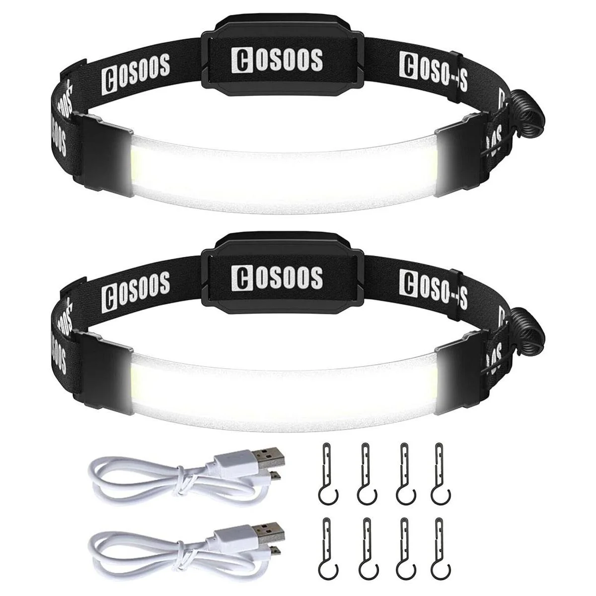 COSOOS 2 linternas recargables para faros delanteros, luces LED brillantes de 210 para exteriores, luz trasera roja, 500 lúmenes, 3.8 onzas, faros delanteros ligeros con diadema para sombrero duro, senderismo y campamento esenciales