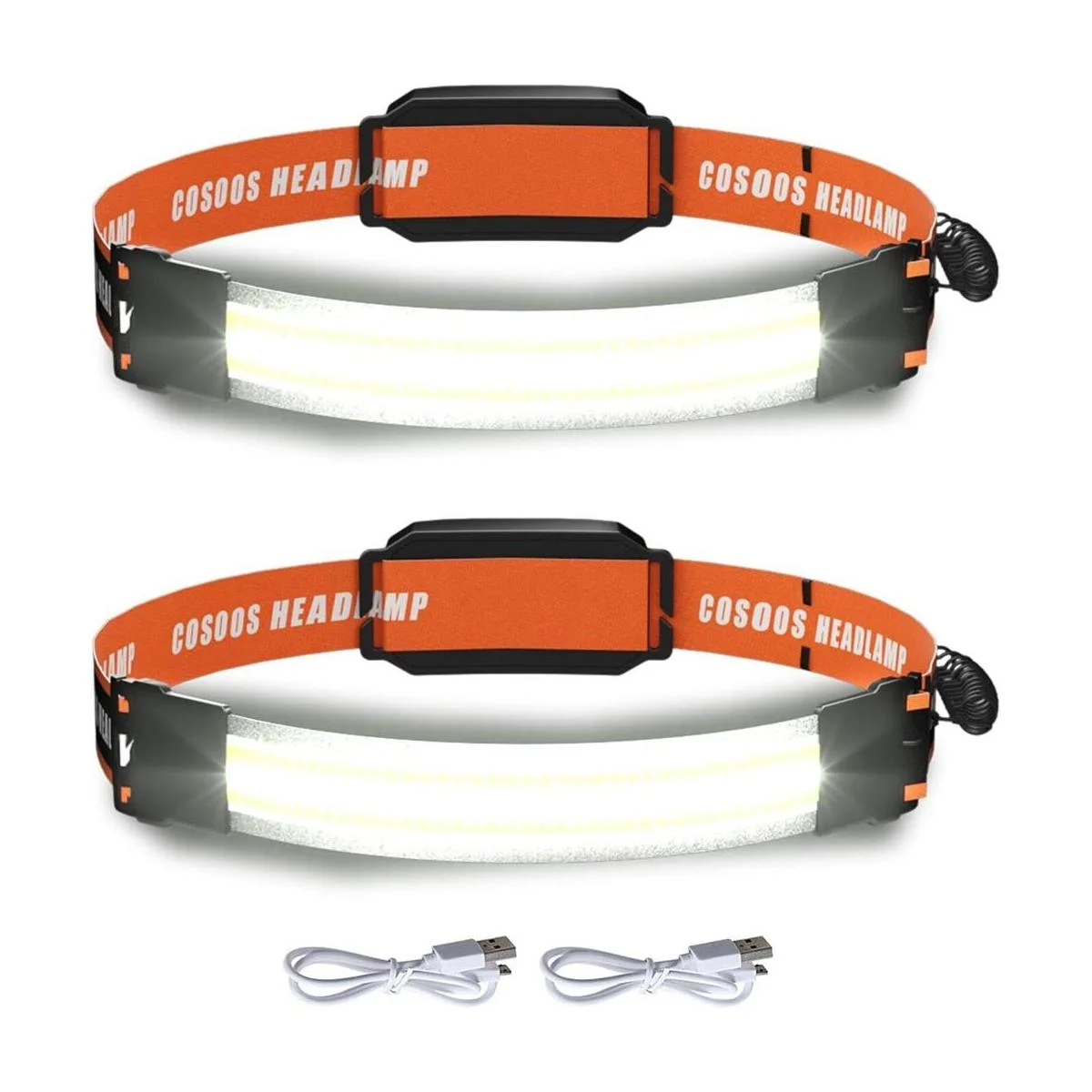 COSOOS Linterna recargable con 2 luces LED, luz trasera roja para exteriores, diadema ajustable para adultos y niños, 500 lúmenes, faros ligeros de 3.8 onzas, senderismo, accesorios de camping