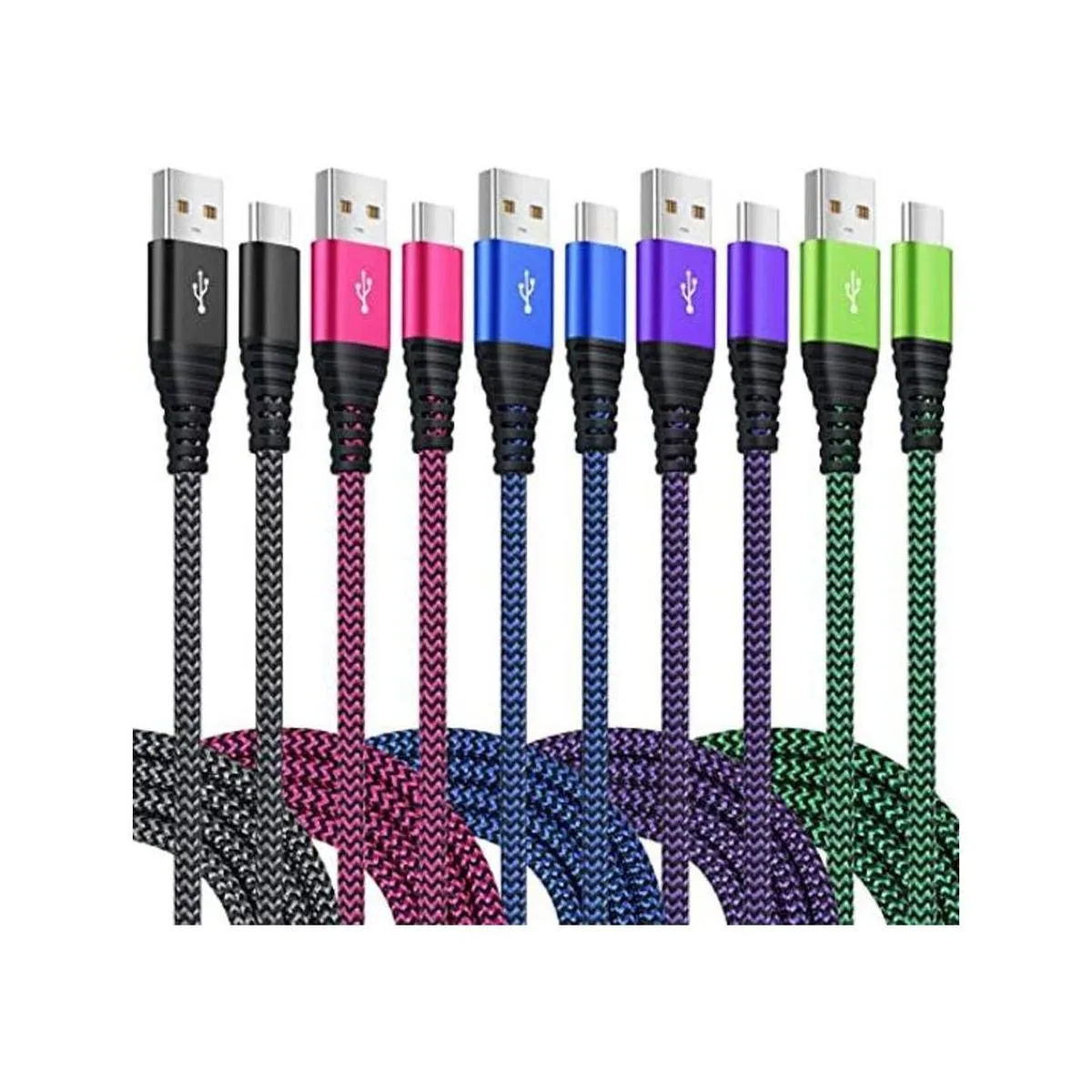 Cargador colorido tipo C de 5 piezas: cubierta trenzada de nailon, diseñada con 6 colores brillantes diferentes para que puedas reconocer qué dispositivo para qué color. También puedes compartirlos con tu familiar, todos pueden elegir su color favorito, sin ensuciar y discutir más.