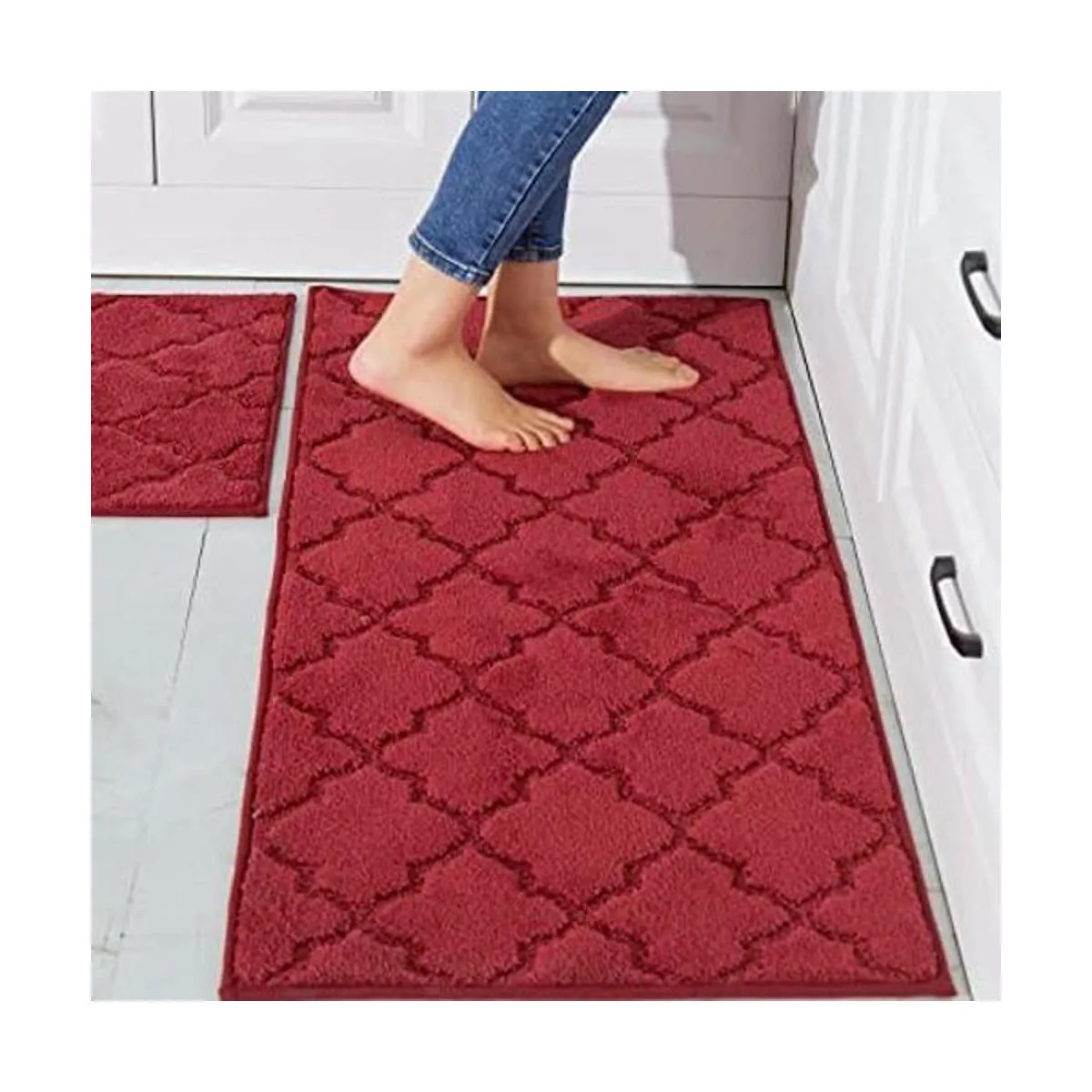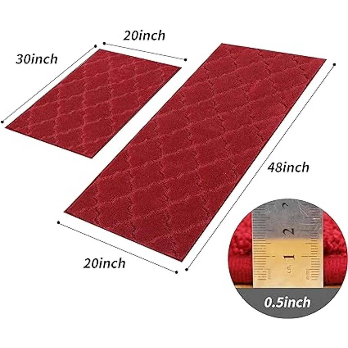 COSY HOMEER Alfombras de cocina suaves 2 piezas para delante del fregadero, súper absorbentes, tapetes y tapetes de cocina de 20 x 30 pulgadas, 20 x 48 pulgadas, tapete de cocina antideslizante, lavable, poliéster, rojo