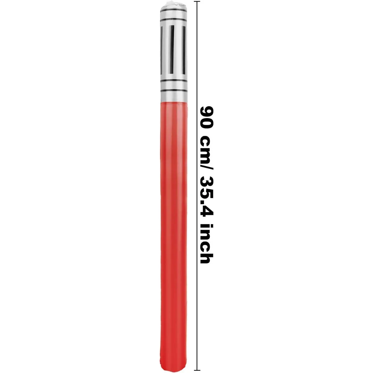 Detalles del tamaño: estos juguetes inflables de sable de luz miden aproximadamente 39.4 in de longitud antes de inflar, 35.4 in después de inflar, tamaño adecuado tanto para adultos como para niños para jugar; después de quitar el gas, el sable no ocupa mucho espacio de almacenamiento y puedes llevarlo alrededor, lo que te da una buena experiencia de uso
