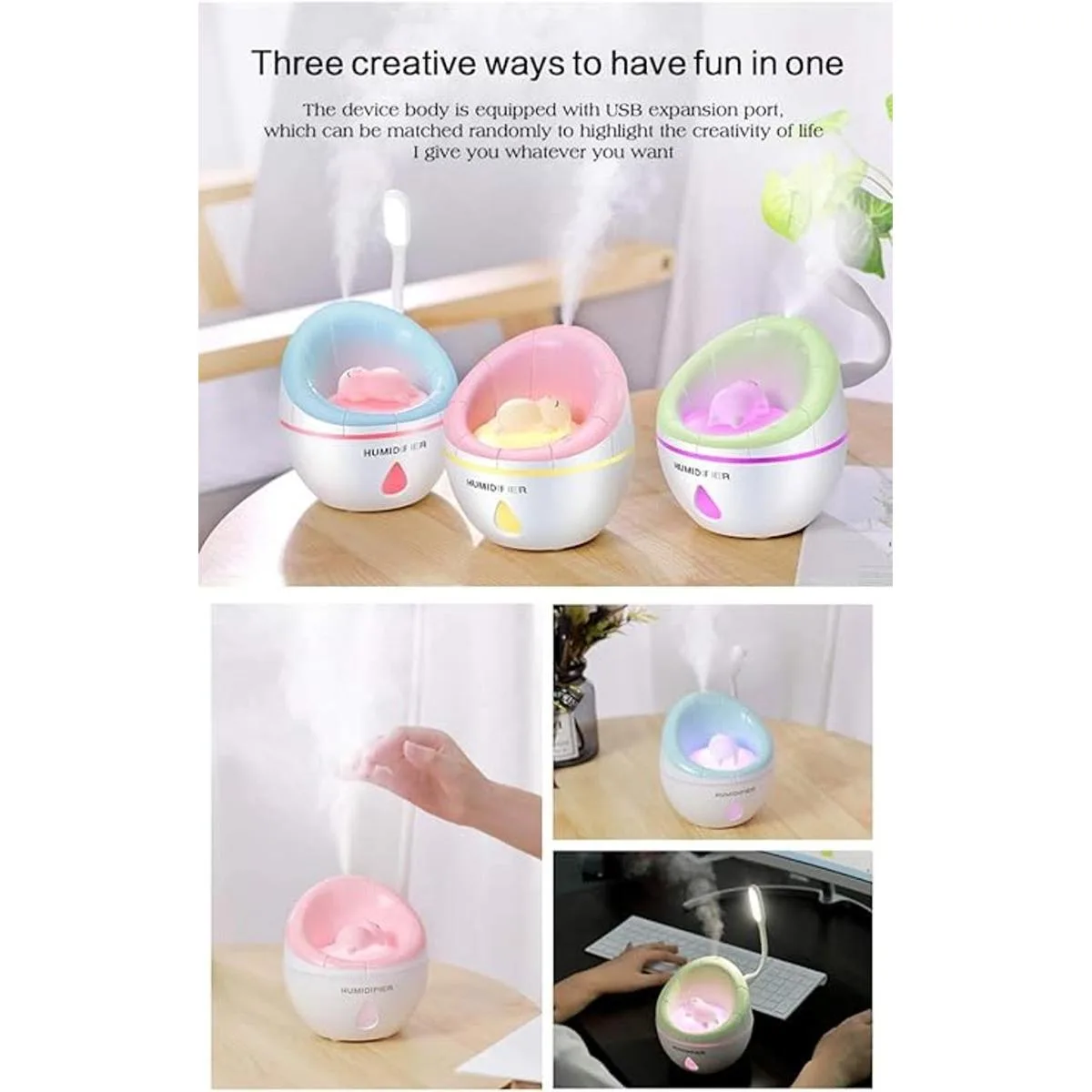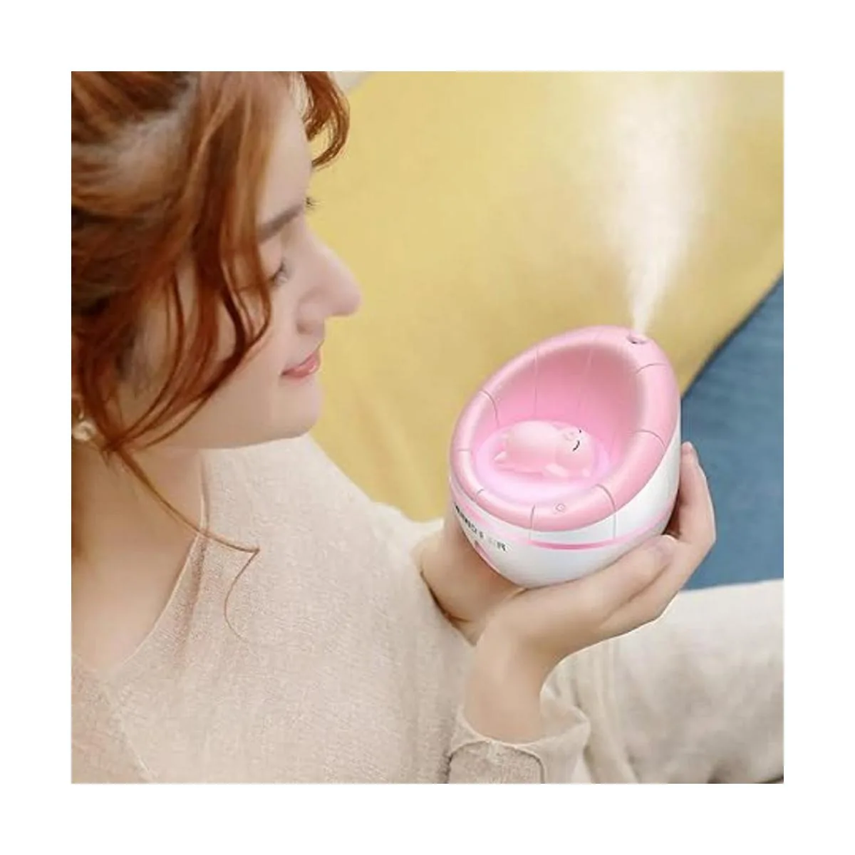 Cotree Humidificador pequeño USB para sofá, mini humidificador frío de 11.8 fl oz de volumen de agua, apagado con un solo toque para el hogar, la oficina, el dormitorio rosa