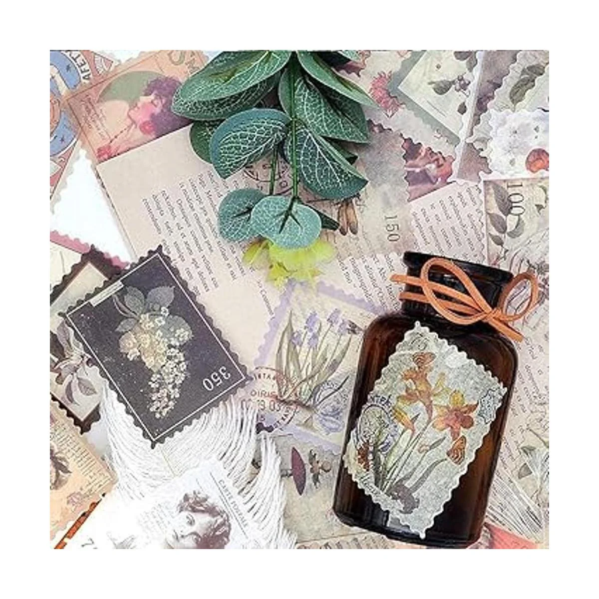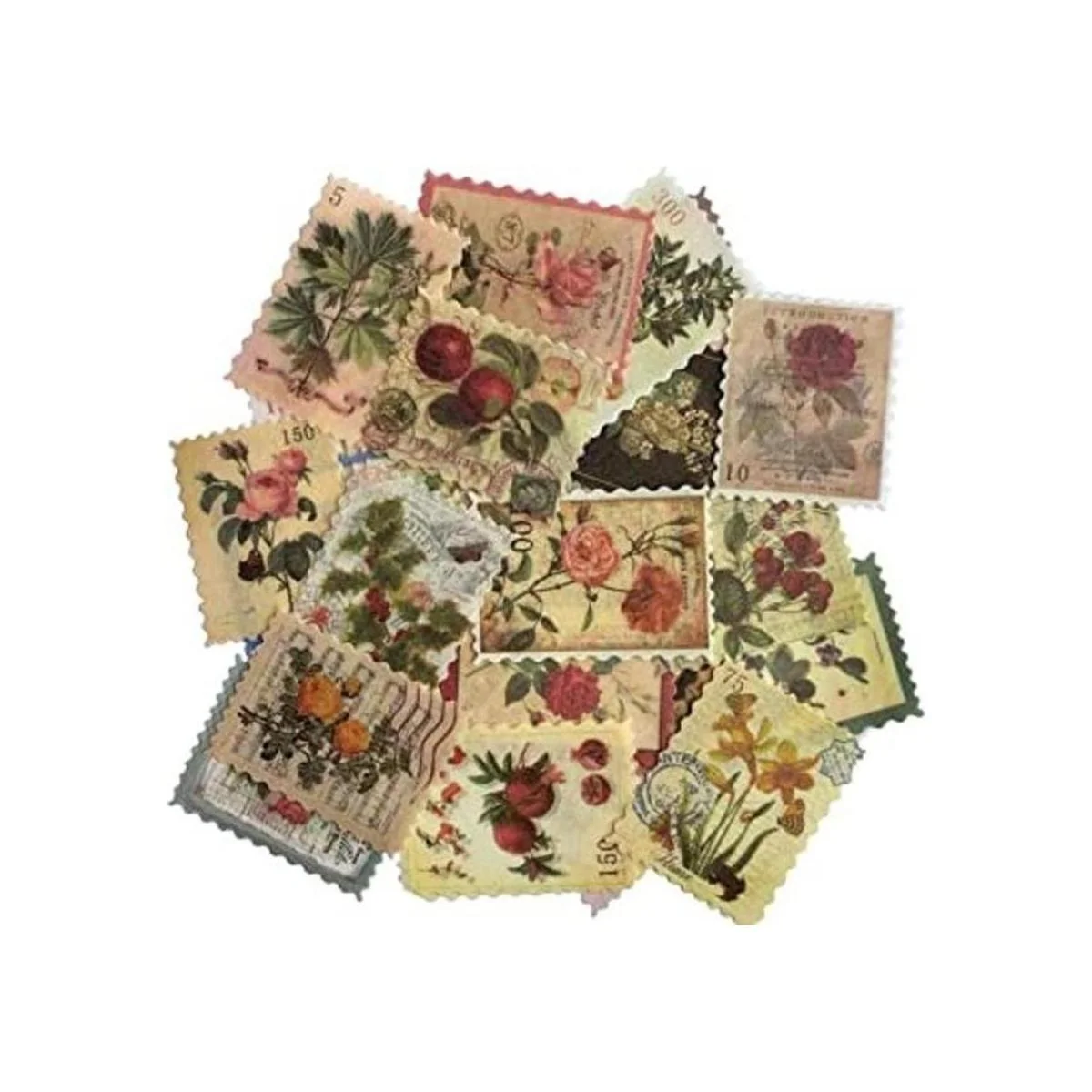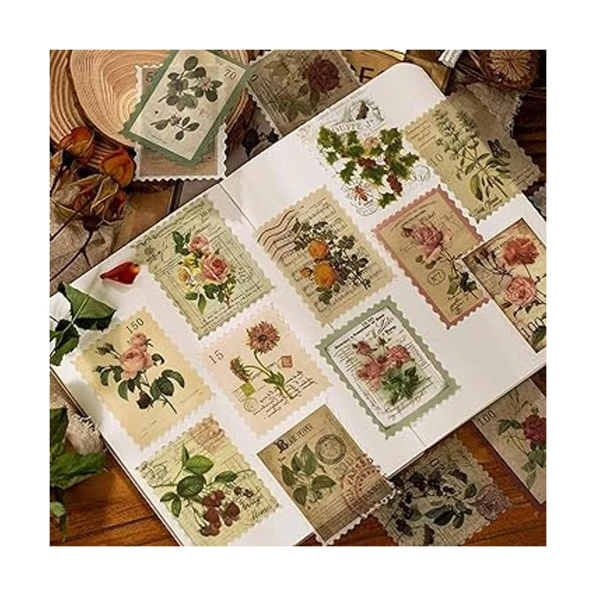 Cotrida 60 calcomanías de sello postal vintage, calcomanía de papel decorativo botánico estético para álbumes de recortes, suministros de diario, planificadores, manualidades de arte para niños, diario de balas Ephemera