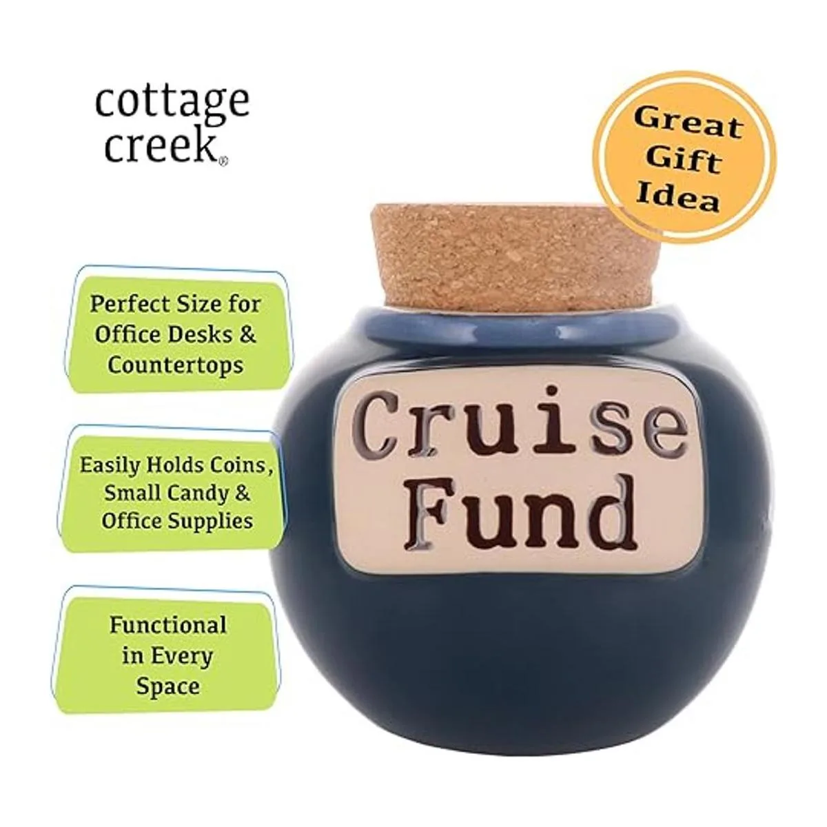 Cottage Creek Fondo de crucero, alcancía para adultos, tarro de cerámica para cruceros, regalos de crucero, fondos universitarios, alcancía, banco de dinero universitario, tarro de caramelo, regalos de graduación