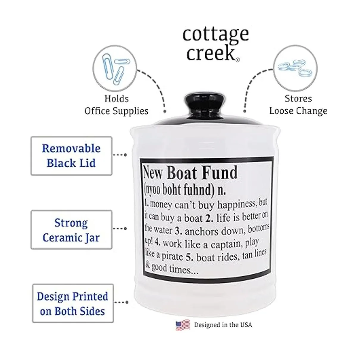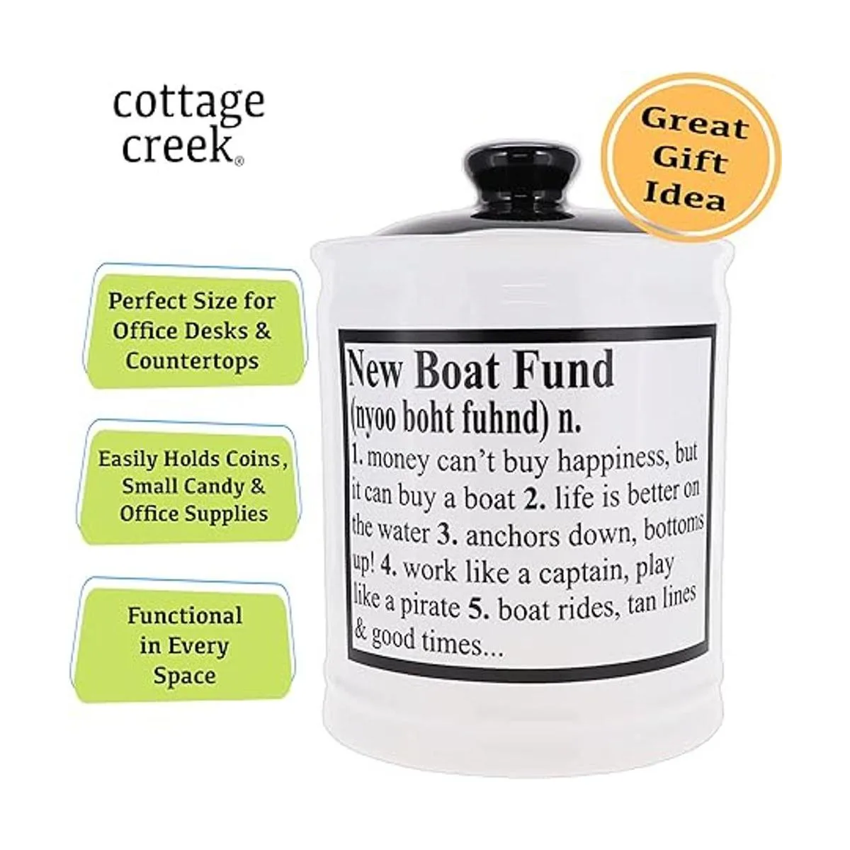 Cottage Creek New Boat Fund Alcancía, tarro de dulces para barco, regalos para barco, regalos para barcos