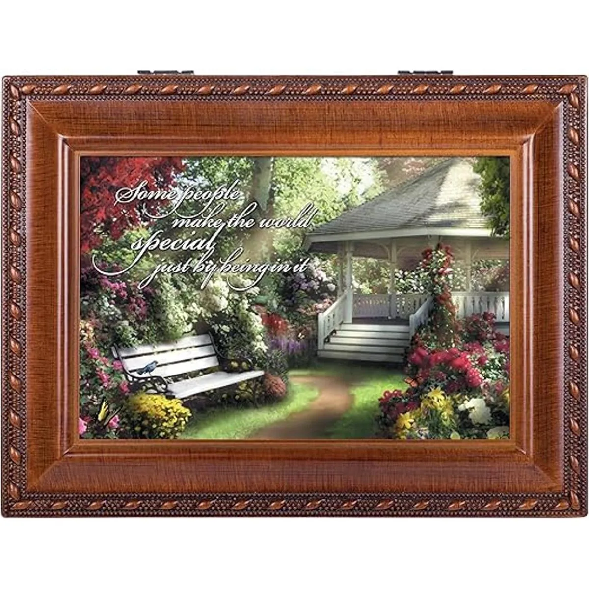 Cottage Garden Gazebo Some People Make World Caja de música especial para joyas con diseño de grano de madera