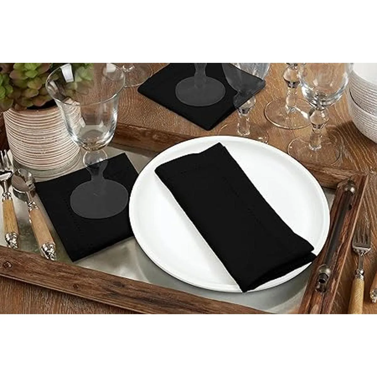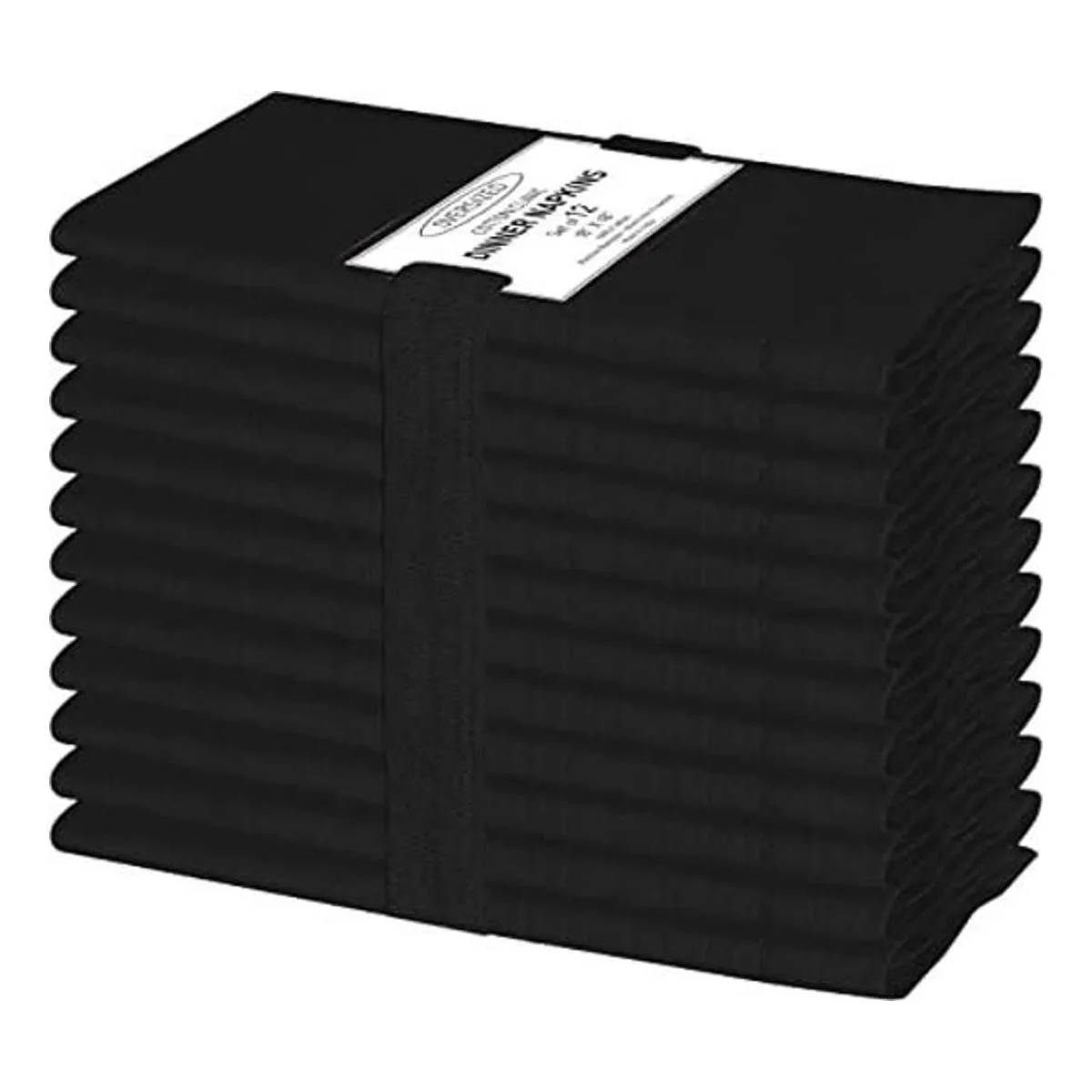 Cotton Clinic Servilletas de cena de tela tipo flameo, lino de mesa perfecto para uso diario, suave, duradero, lavable, ideal para fiestas, bodas, granja, Navidad, Pascua, juego de 12 18 x 18 pulgadas, color negro