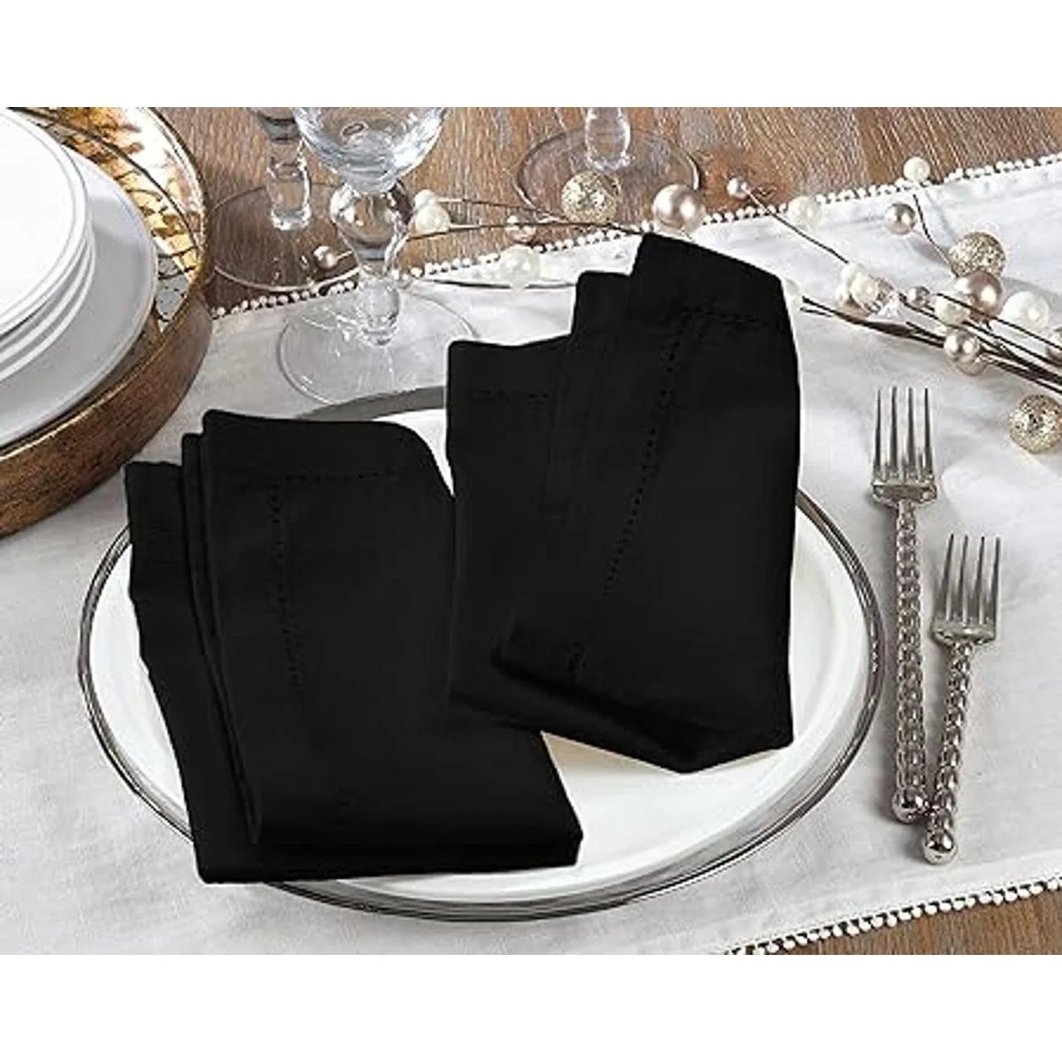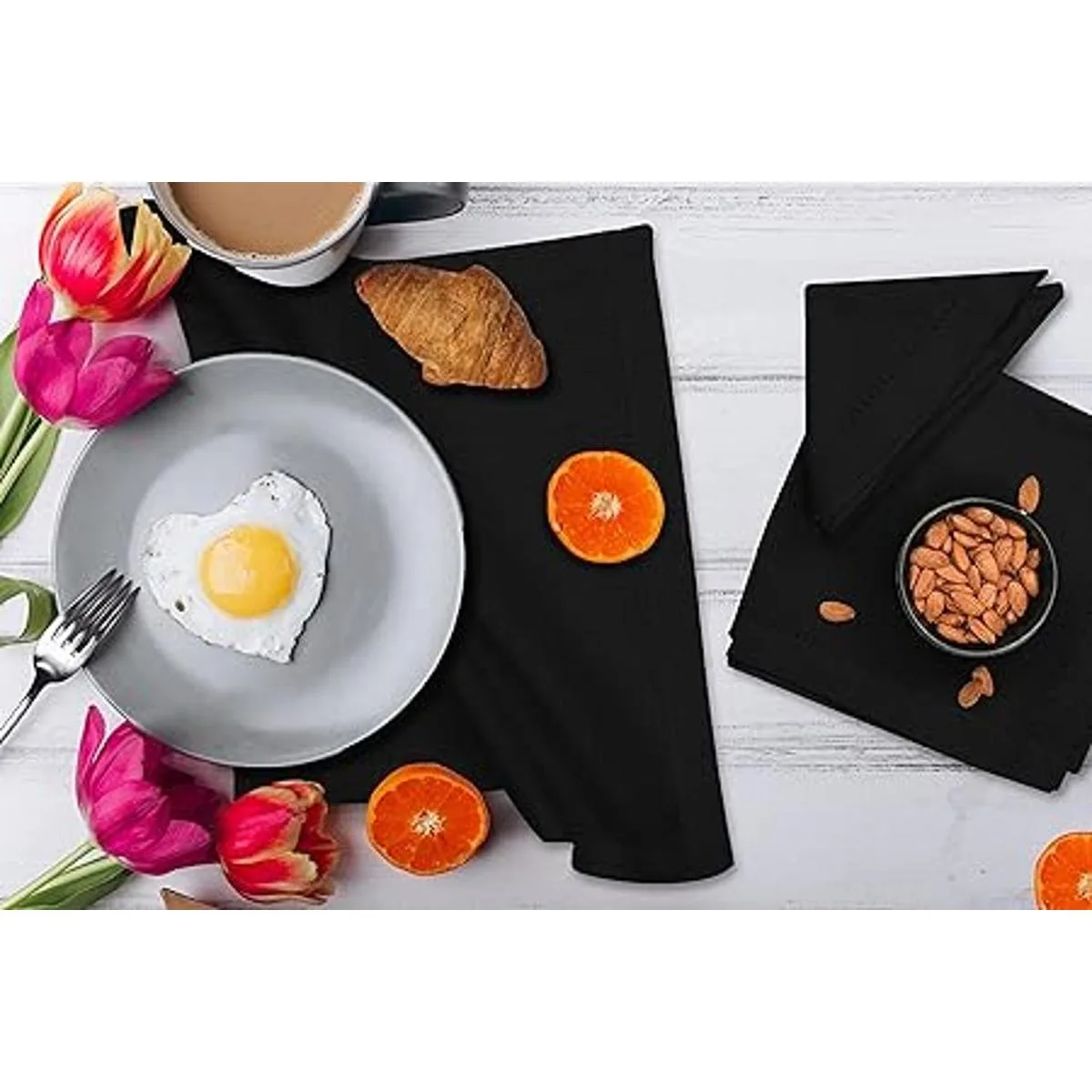 Cotton Clinic Servilletas de cena de tela tipo flameo, lino de mesa perfecto para uso diario, suave, duradero, lavable, ideal para fiestas, bodas, granja, Navidad, Pascua, juego de 12 (18 x 18 pulgadas), color negro)