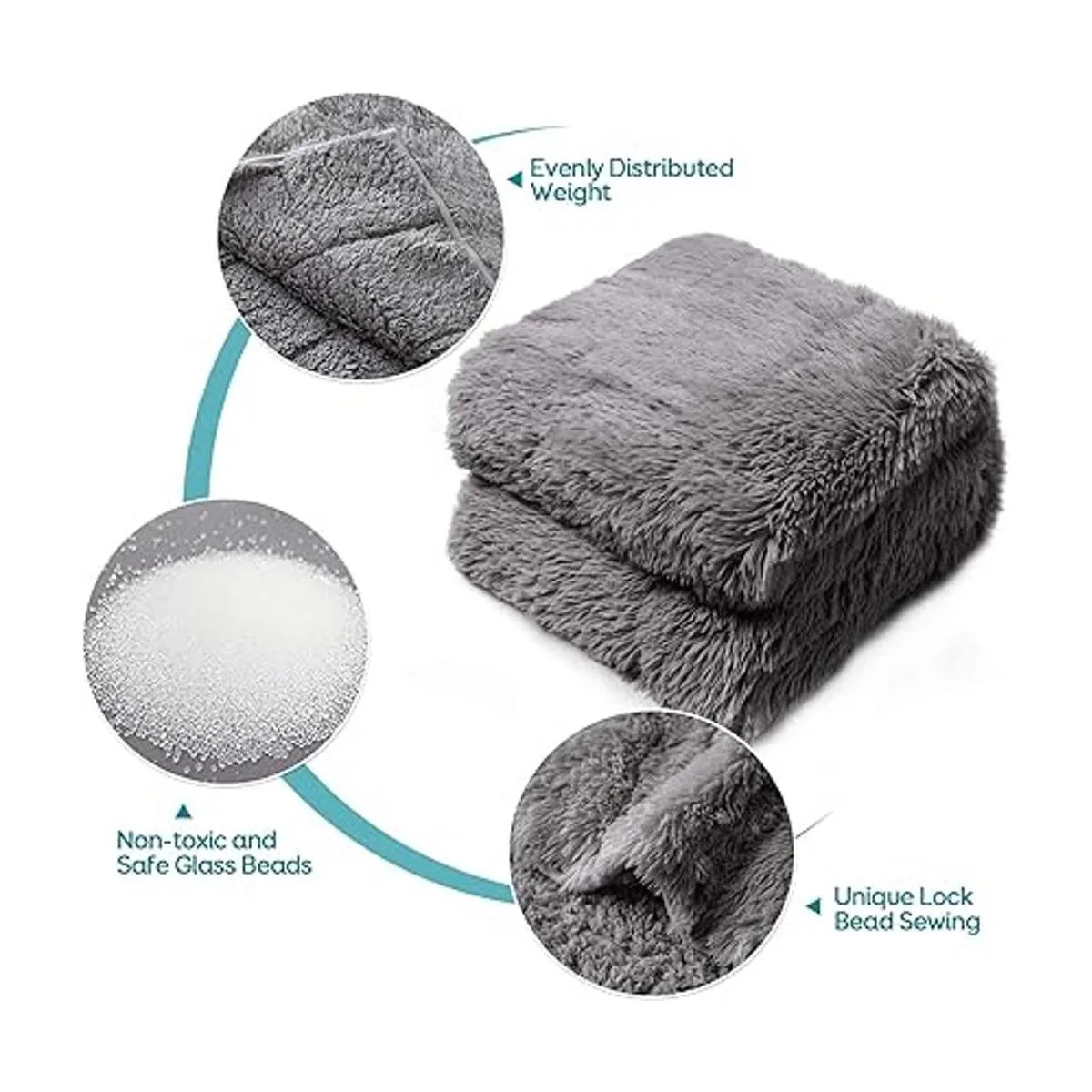 Vive en la nube: La capa superior de nuestra suave manta con peso está llena de pelo sintético largo de lujo con un peso relajante, que es tan suave y se siente como aire peludo. El reverso está diseñado con sherpa suave para añadir comodidad y mantenerte caliente. Disfruta de una lujosa suavidad mientras descansas, ves la televisión, tomas una siesta o disfrutas de actividades al aire libre.