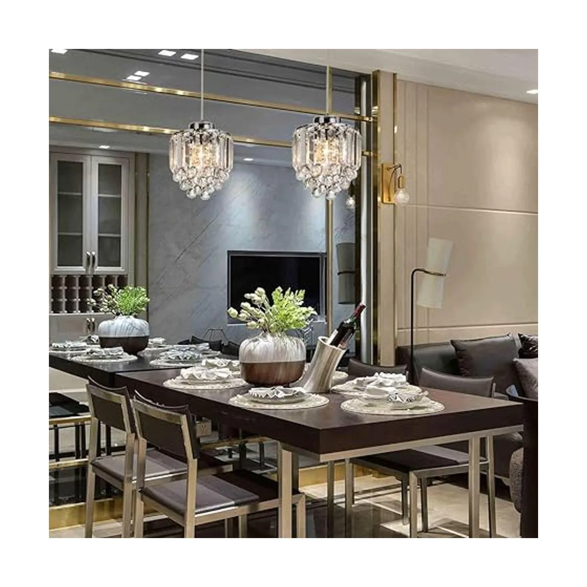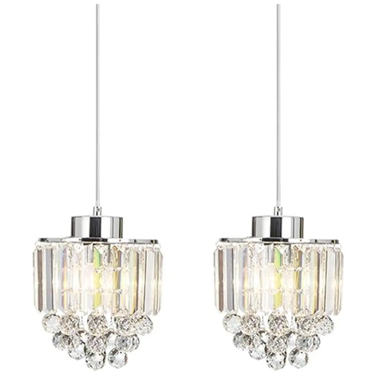 COTULIN Juego de 2 lámparas colgantes de cristal pulido decorativas, cromadas para cocina, isla, sala de estar, comedor, barra de cable ajustable colgante