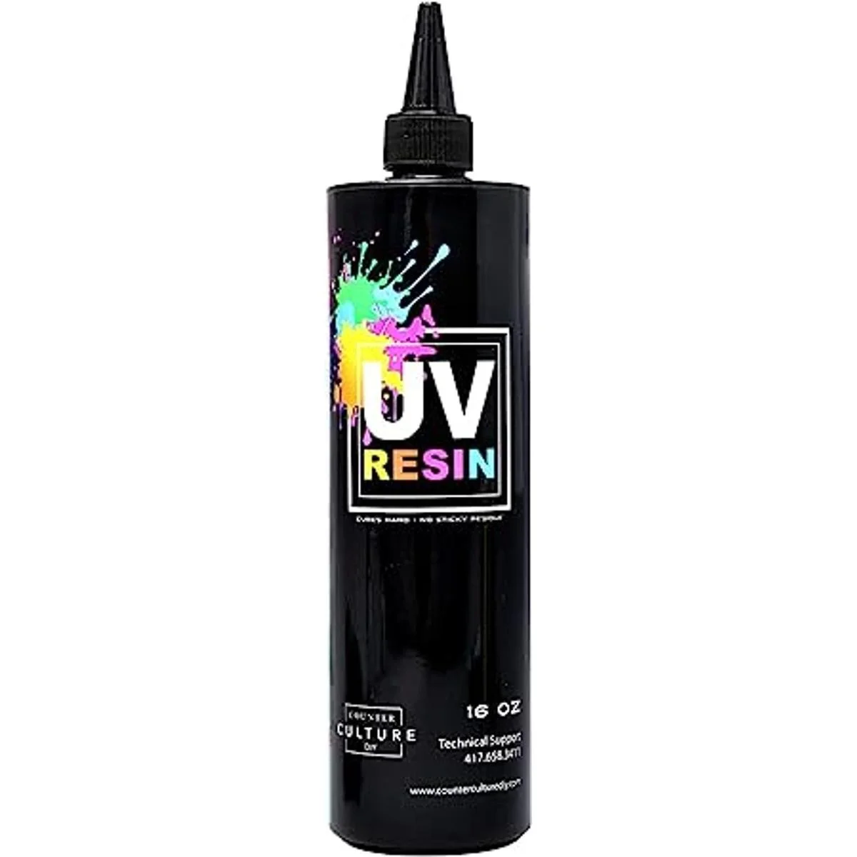 Counter Culture DIY Resina UV transparente, 16 oz, suministros de arte rápido para revestimiento y fundición, ideal para joyas, llaveros, pegamento epoxi cura duro, sin residuos pegajosos