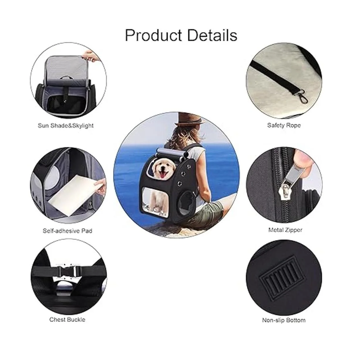 Diseño expandible trasero: con el diseño expandible trasero, el espacio dentro de la mochila se puede duplicar. No solo aumenta la circulación del aire, sino que también permite que tu mascota permanezca en él más cómodamente y se mueva más libremente