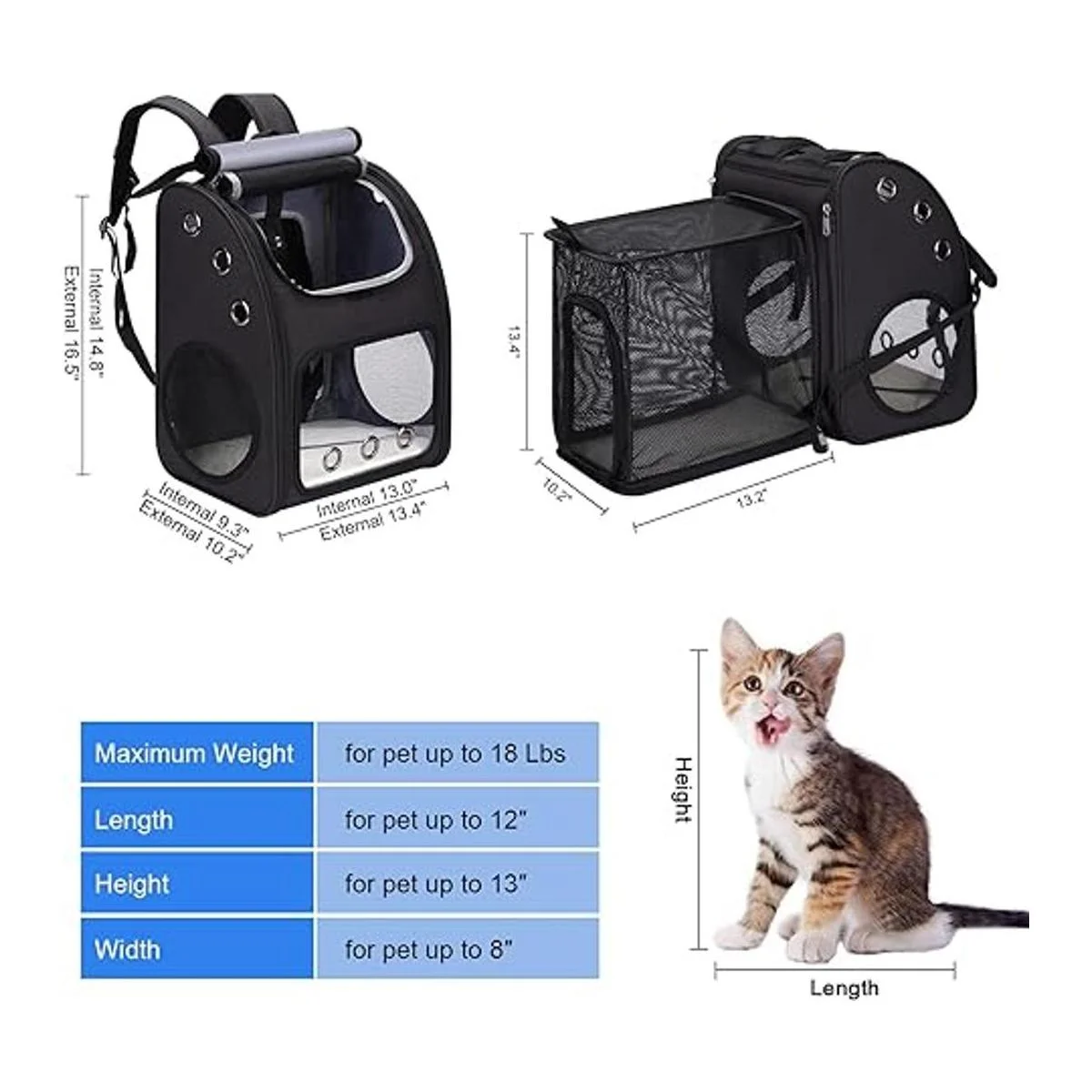 COVONO Mochila expandible para mascotas, para gatos, perros y animales pequeños, transportador de viaje portátil para mascotas, diseño superventilado, aprobado por aerolíneas, ideal para viajes, senderismo, camping