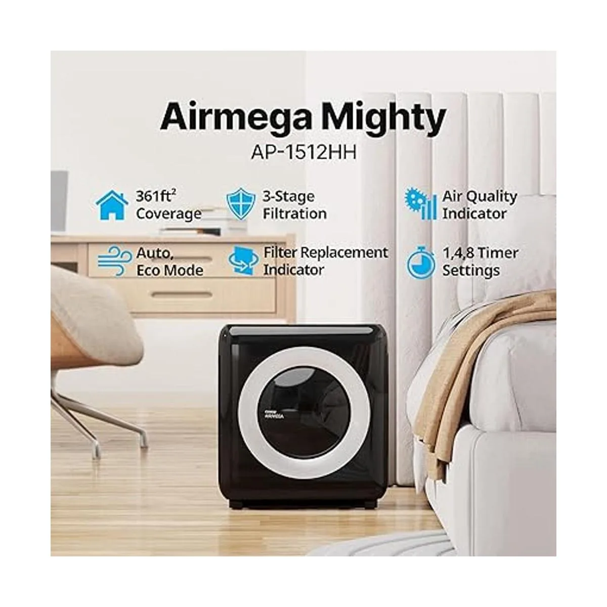 Coway Mighty AP1512HH está diseñado para adaptarse a tamaños de habitaciones de hasta 361 pies cuadrados CADR: Polvo 246 / Polen 240 / Humo 233 pies cúbicos.
