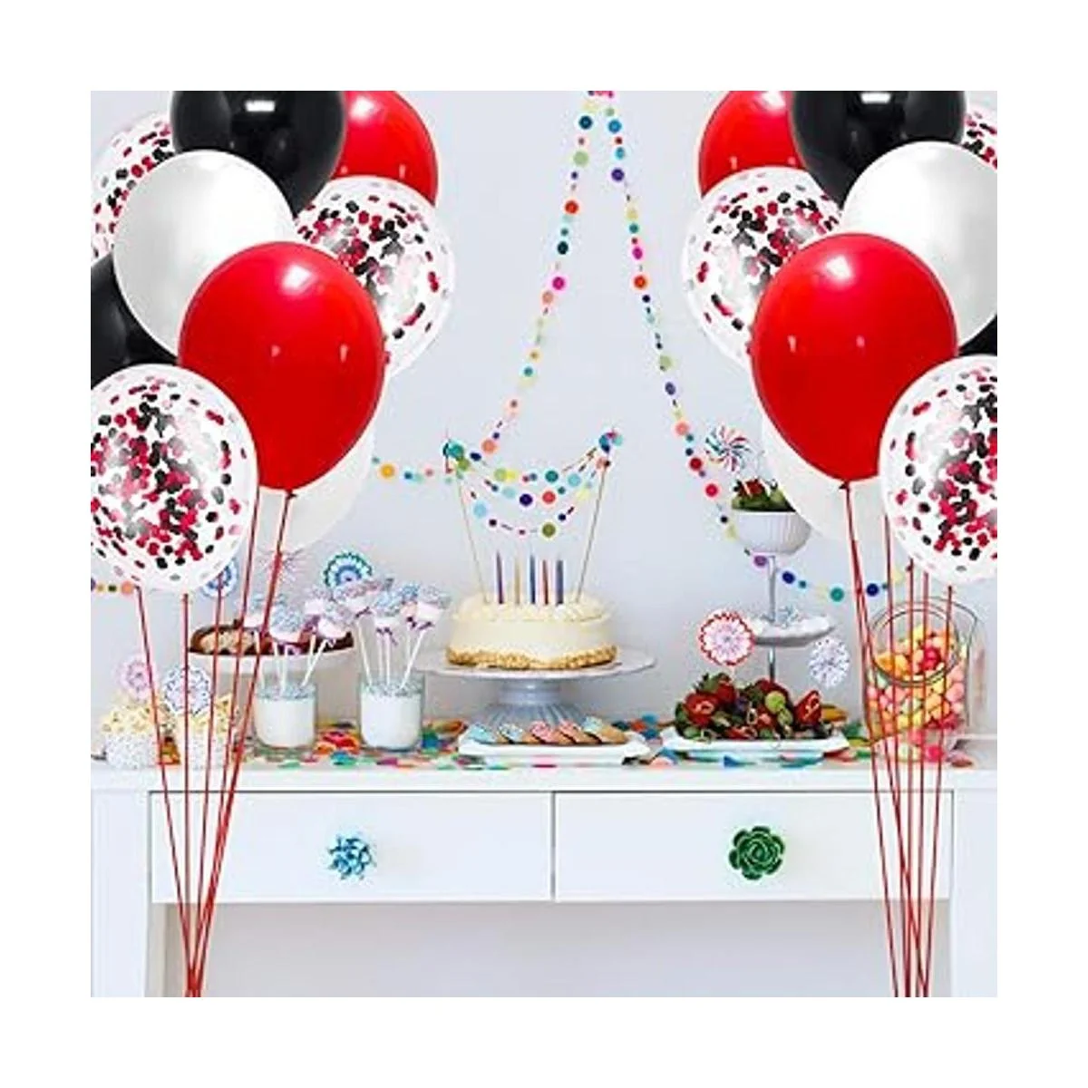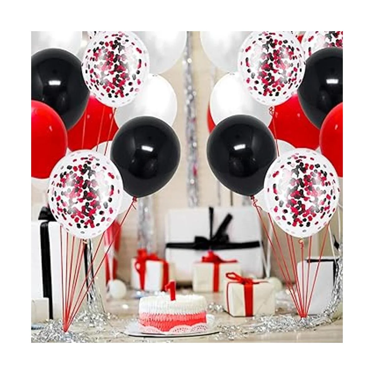 coxylaco Globos de látex de confeti negro y rojo, paquete de 60 globos de fiesta de confeti negro y rojo de 12 pulgadas para el día de la madre, cumpleaños, baby shower, boda, compromiso, empresa, evento, decoración de fiesta