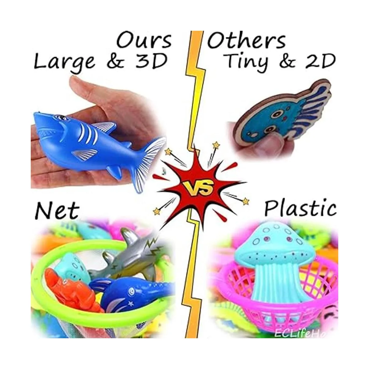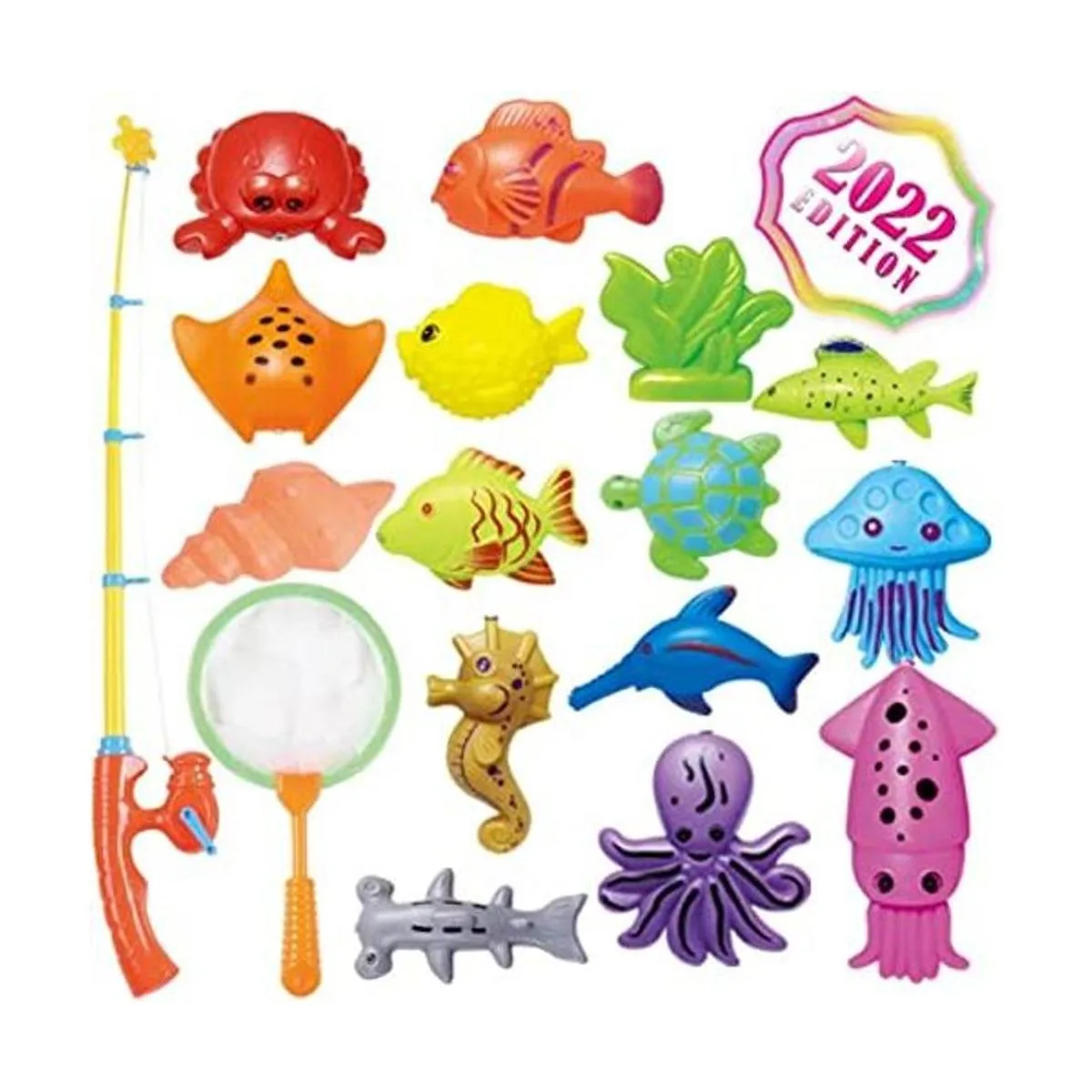Combinación de aprendizaje perfecta: contiene 15 tipos de animales de peces de juguete, 1 red y 1 poste.