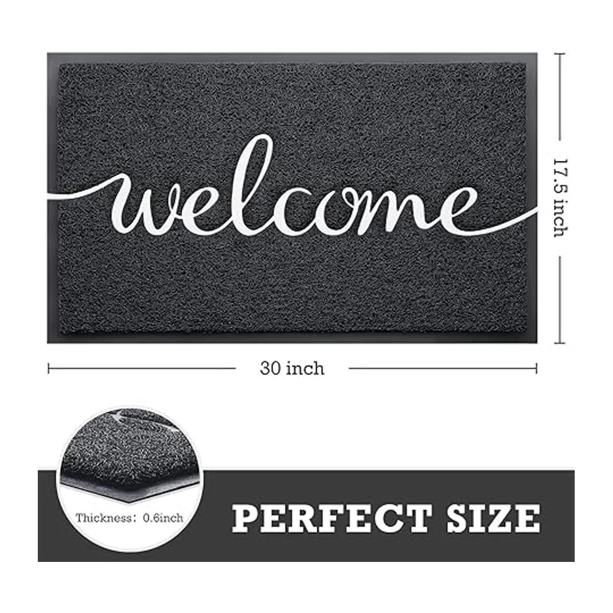Tamaño perfecto: el felpudo CozyBounty mide 30 x 17.5 pulgadas largo x ancho. El tapete es adecuado para tu puerta delantera, puerta de patio y áreas exteriores. El diseño de perfil bajo garantiza que la alfombrilla no se atasque debajo de una puerta al abrir y cerrar.