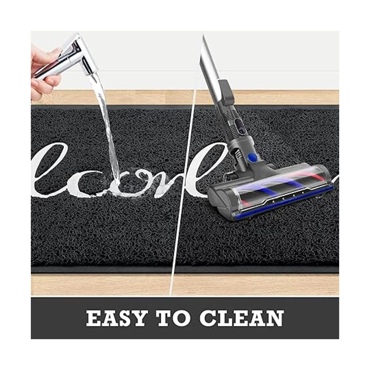 Fácil de limpiar y mantener: la alfombrilla para exteriores se puede limpiar de muchas maneras. Agita los desechos de la alfombrilla o utiliza una aspiradora para eliminar el barro y la suciedad. Para una limpieza profunda, enjuaga la alfombra de entrada con una manguera de jardín.