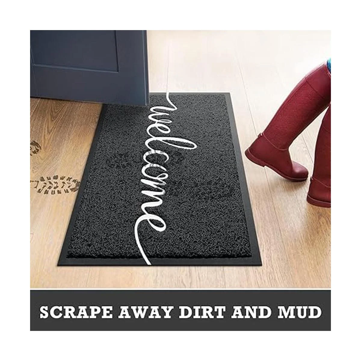Raspa la suciedad eficazmente: la tela de polipropileno ligeramente elevada en la superficie de la alfombrilla es útil para raspar la suciedad de manera más eficaz. El barro o los desechos de los zapatos solo deben frotarse ligeramente en la alfombrilla para dejarse en la alfombrilla para mantener los suelos limpios.