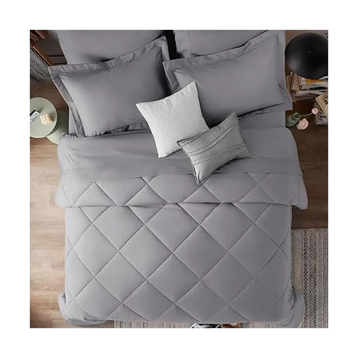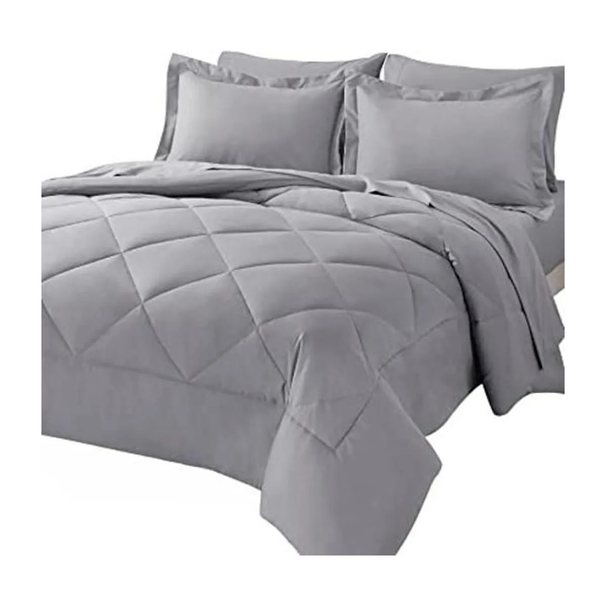 CozyLux Juego de edredón de 7 piezas con sábanas de color gris claro para todas las estaciones con edredón, fundas de almohada, sábana encimera, sábana bajera y fundas de almohada