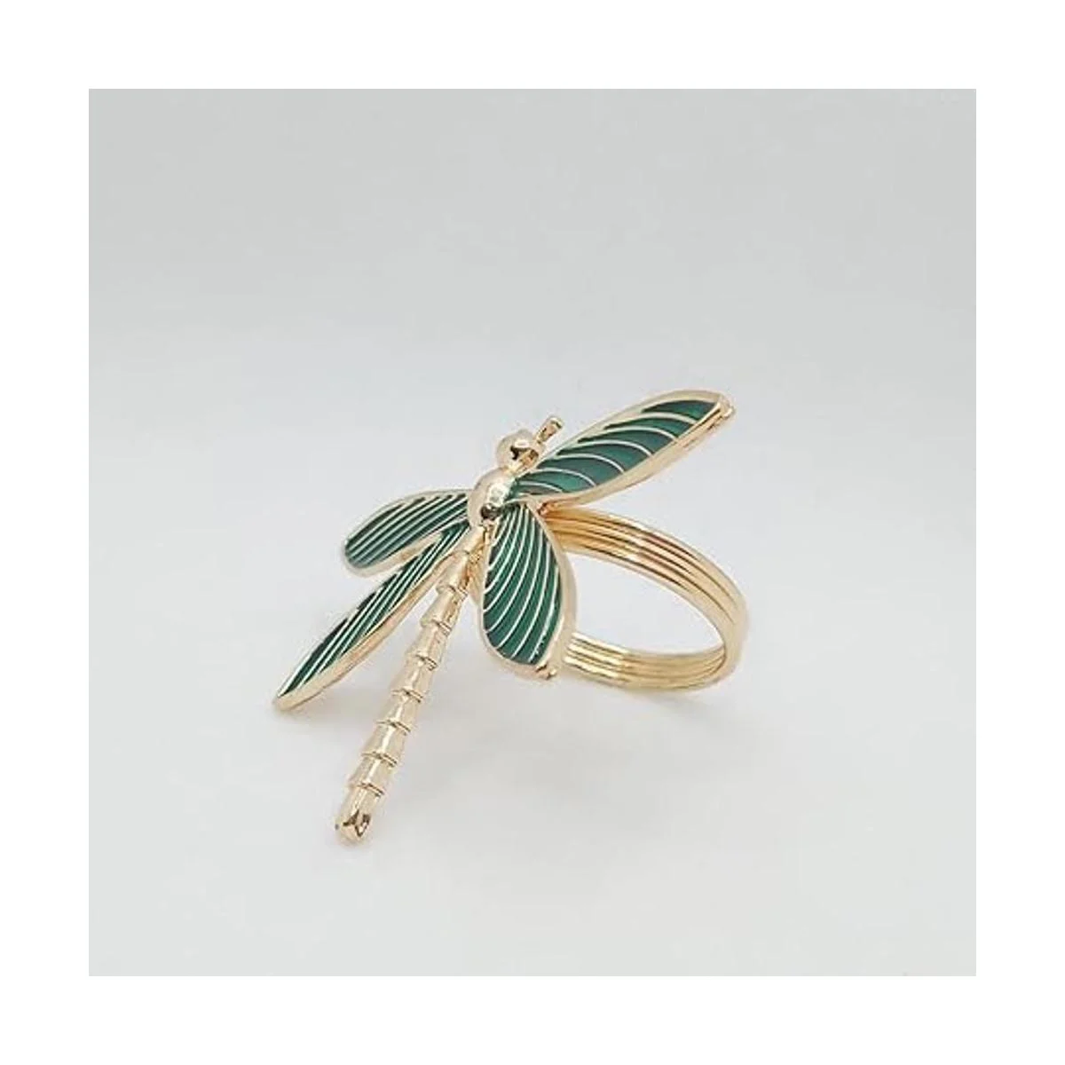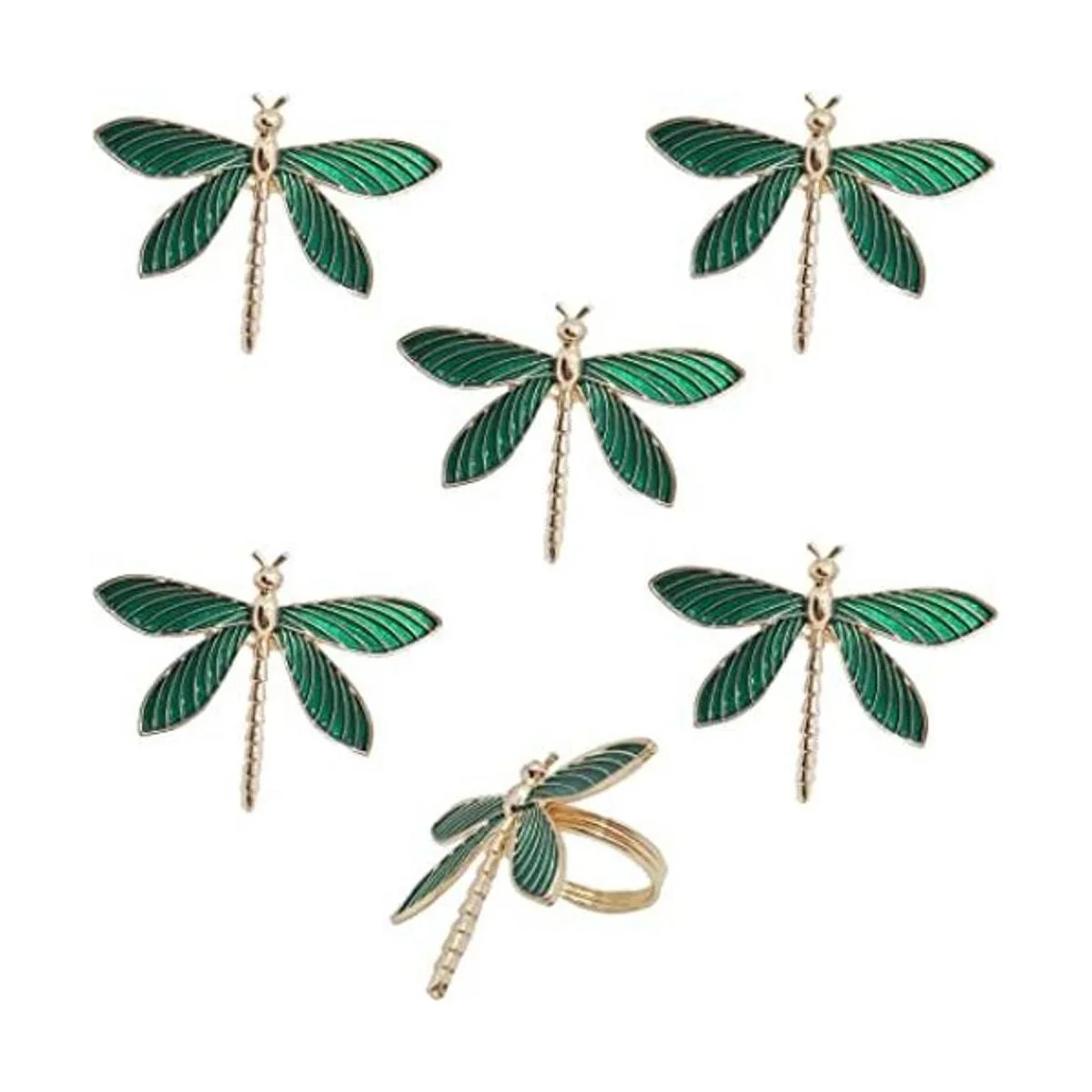 CPELLESSE Paquete de 6 servilleteros dorados con diseño de libélula y hebilla para Acción de Gracias, Navidad, reunión familiar, anillos de decoración de mesa verde