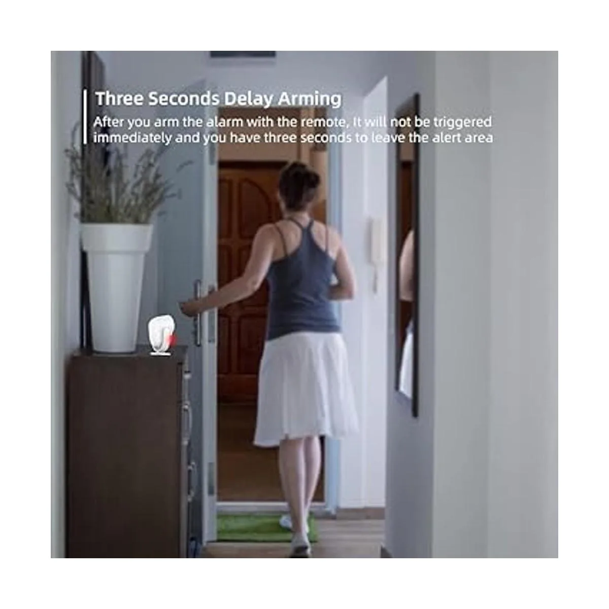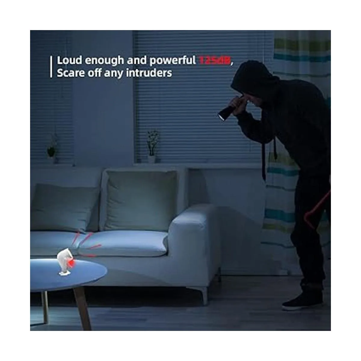 Diseño más seguro: el sensor de movimiento PIR cuenta con tecnología de procesamiento lógico difuso y algoritmos de análisis inteligentes para optimizar su capacidad para interpretar correctamente la señal. Rango de comunicación de hasta 328 pies rango de sonido en lugar abierto y rango de detección del sensor infrarrojo de aproximadamente 16 a 26 pies, cuando el ladrón intenta llegar aquí, lo detectará y activará 1255 pies sirena dB.