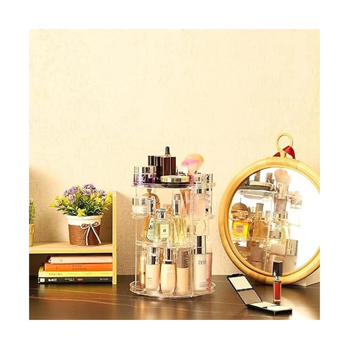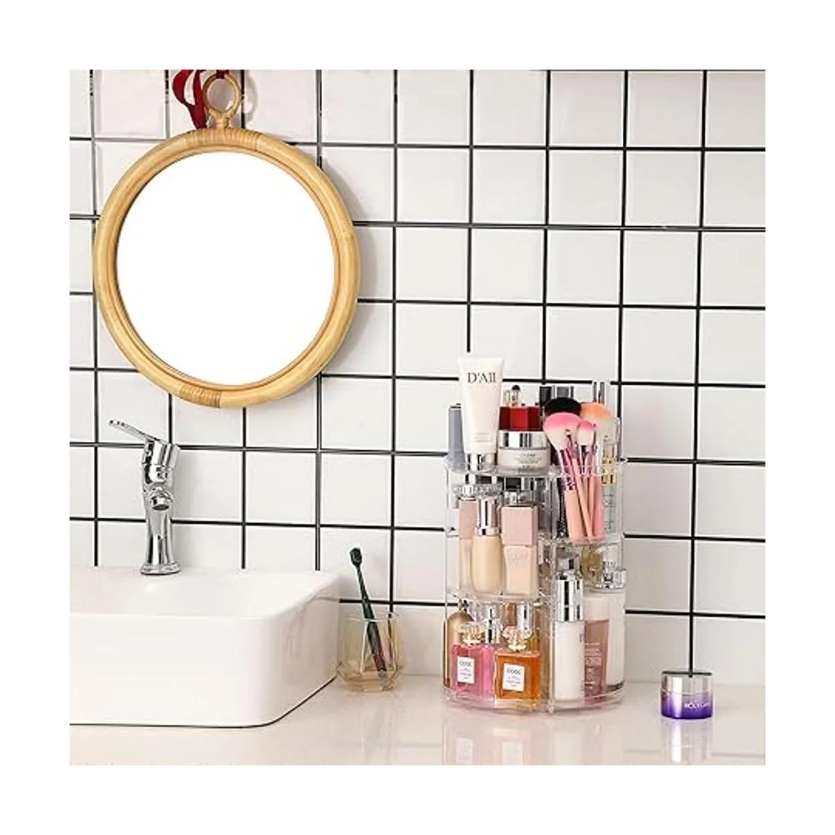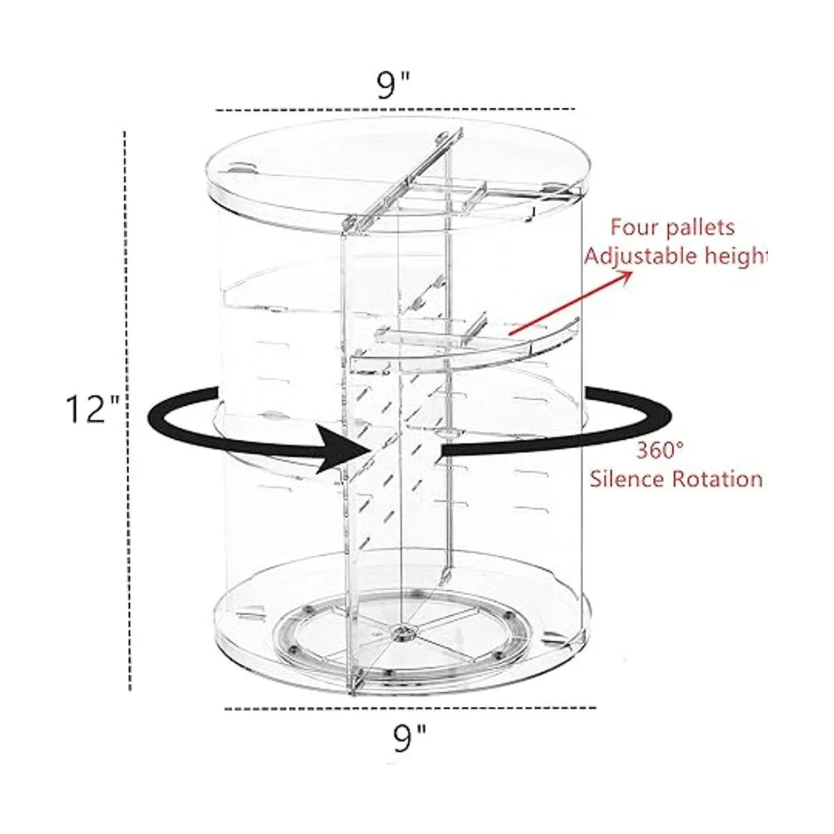 Cq acrylic Organizador de maquillaje con rotación de 360 grados, para baño, 4 niveles ajustables para almacenamiento de cosméticos y vitrinas para maquillaje, transparente
