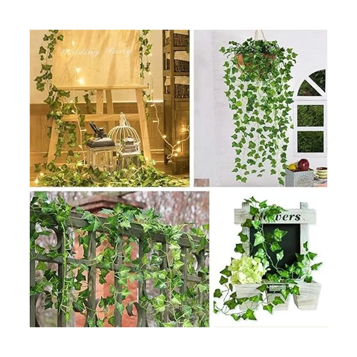 Ocasión adecuada: la guirnalda de hiedra artificial puede decorar bodas, festivales, fiestas de safari, decoración del hogar, jardines, vallas, homenajes florales, cobertizos, marcos de columpio, tuberías de aire acondicionado, tuberías de agua, marco de puerta, cables expuestos, escaleras, luces LED, etc.