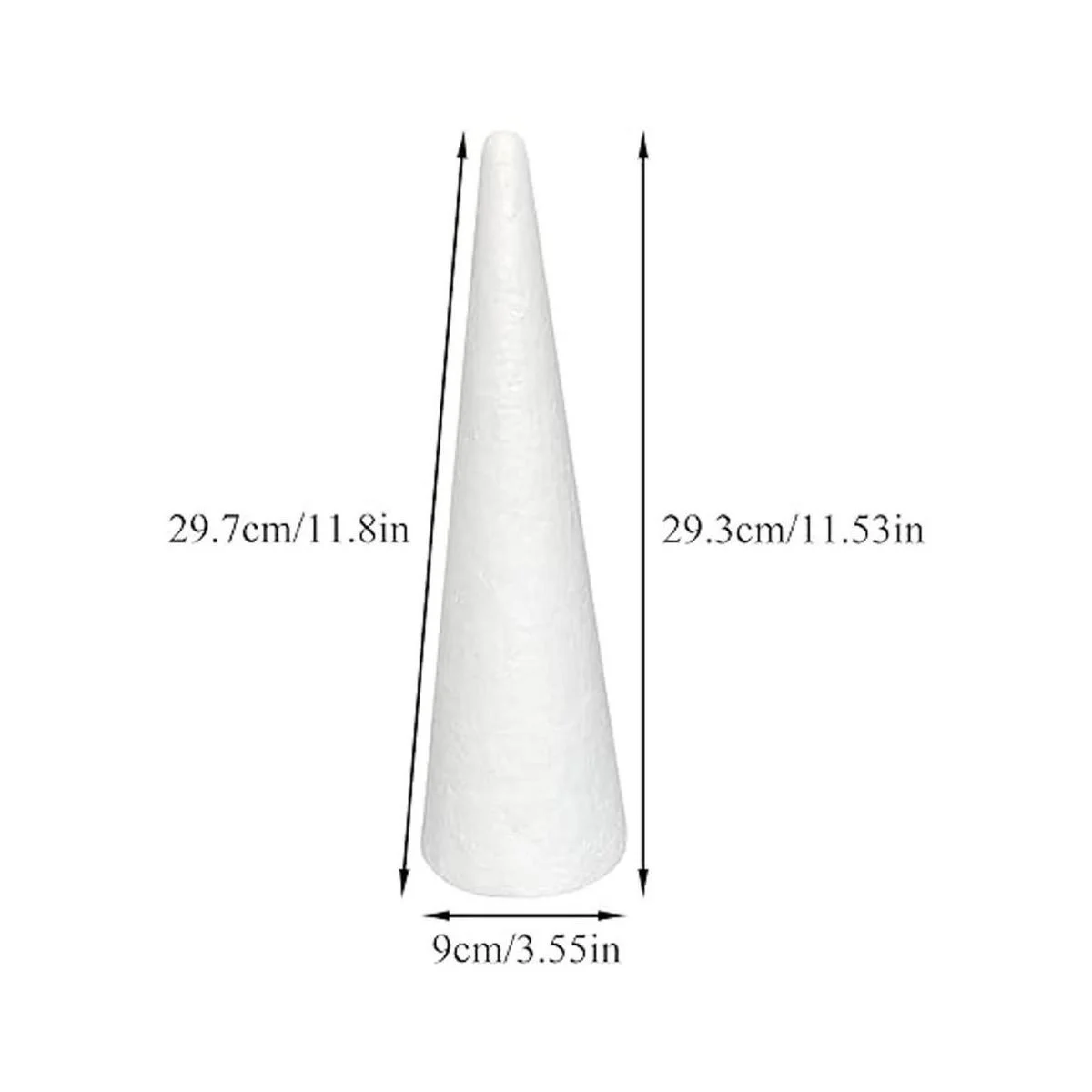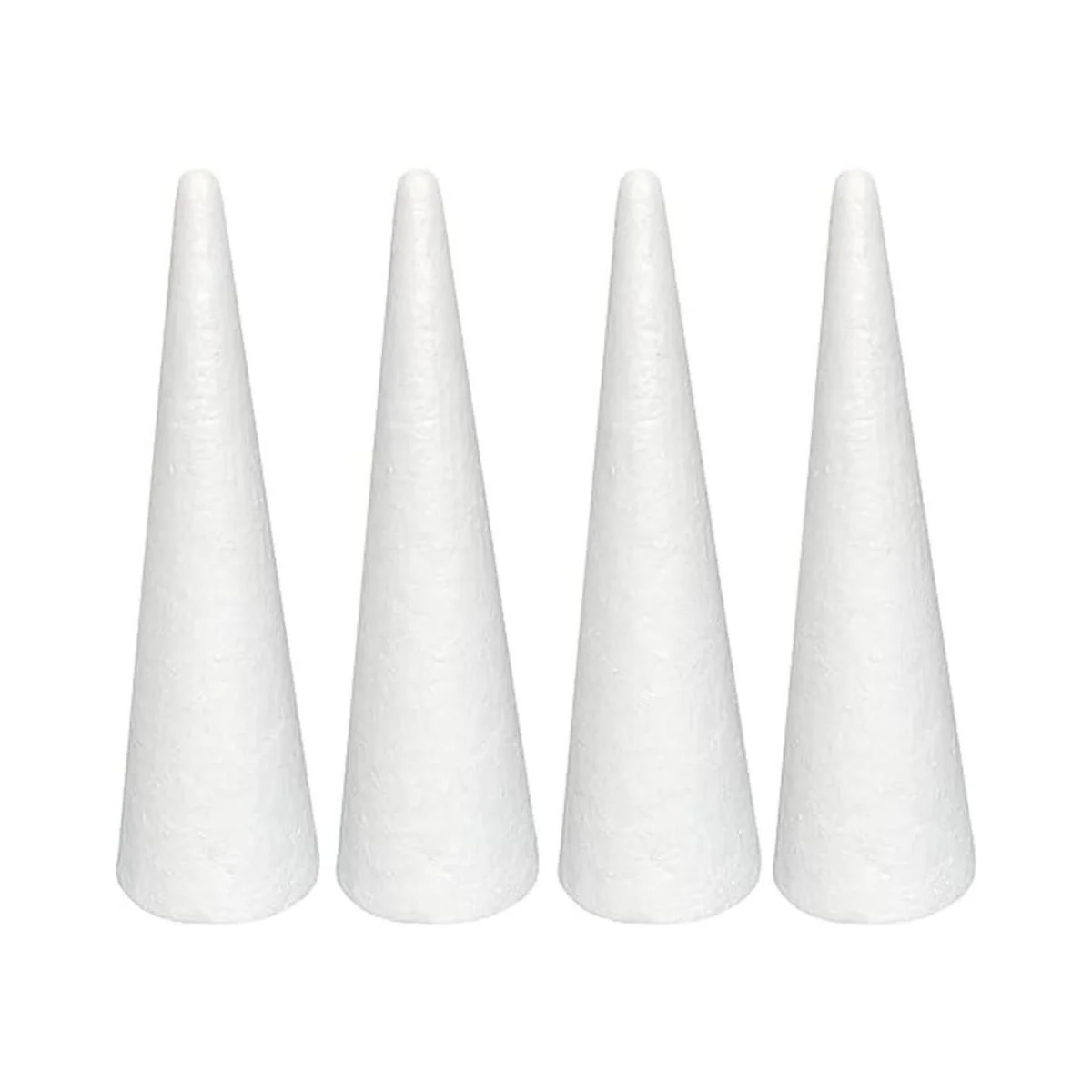 Crafjie Conos de espuma para manualidades 3.55 x 11.8 pulgadas, paquete de 4, conos de espuma de poliestireno blanco para árbol de Navidad, suministros de manualidades, para proyectos de manualidades en casa, árbol de Navidad, centro de mesa