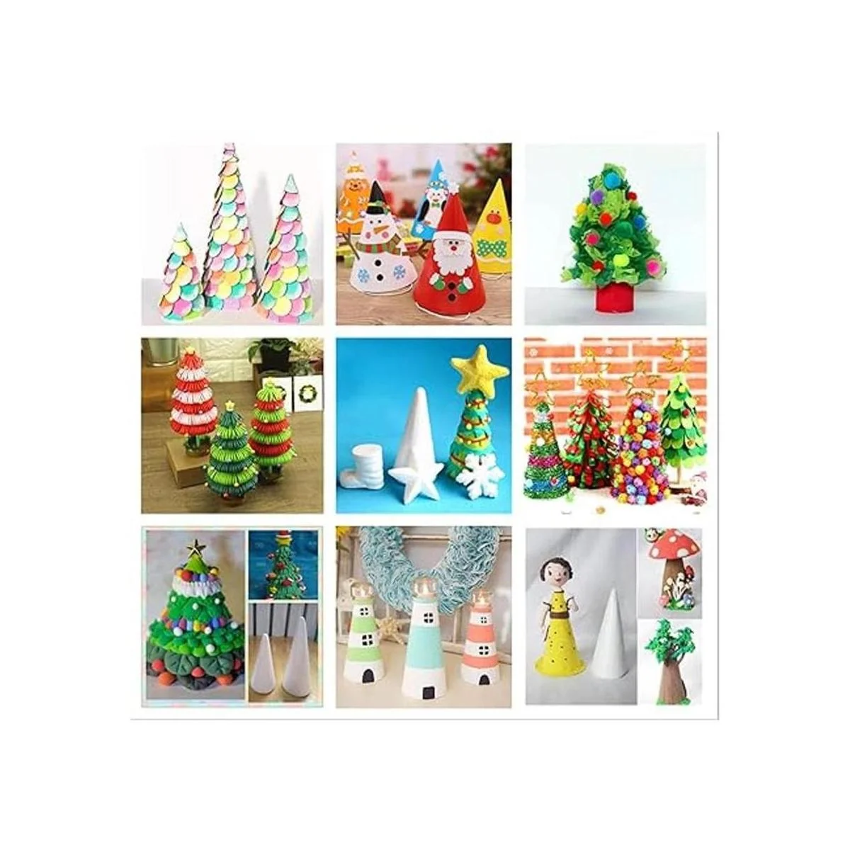 Aplicación: utiliza los conos de espuma para crear centros de mesa únicos o decoración de fiesta para una próxima boda, Navidad, baby shower, fiesta de compromiso o celebración de cumpleaños, crea decoraciones de fiesta con estos conos, artes y manualidades para niños. Da rienda suelta a la imaginación de los niños.