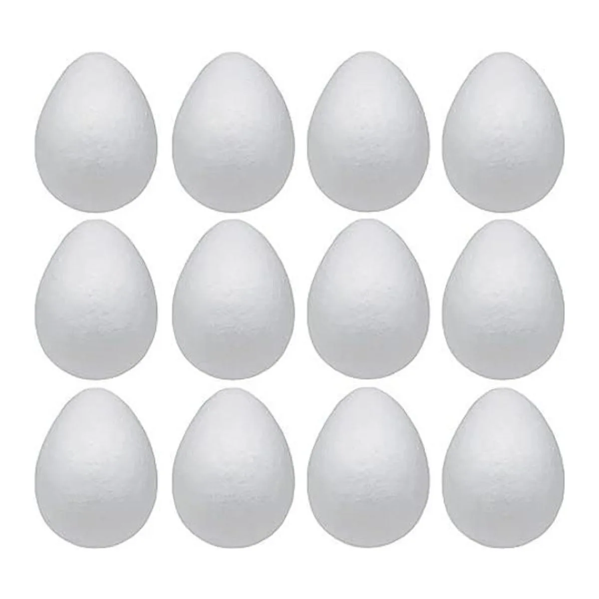 Crafjie Huevos de espuma de poliestireno para manualidades, 12 unidades, 4.7 in, color blanco, para primavera, Pascua, Halloween, Navidad, vacaciones, manualidades, manualidades, pintura hecha a mano, proyectos escolares