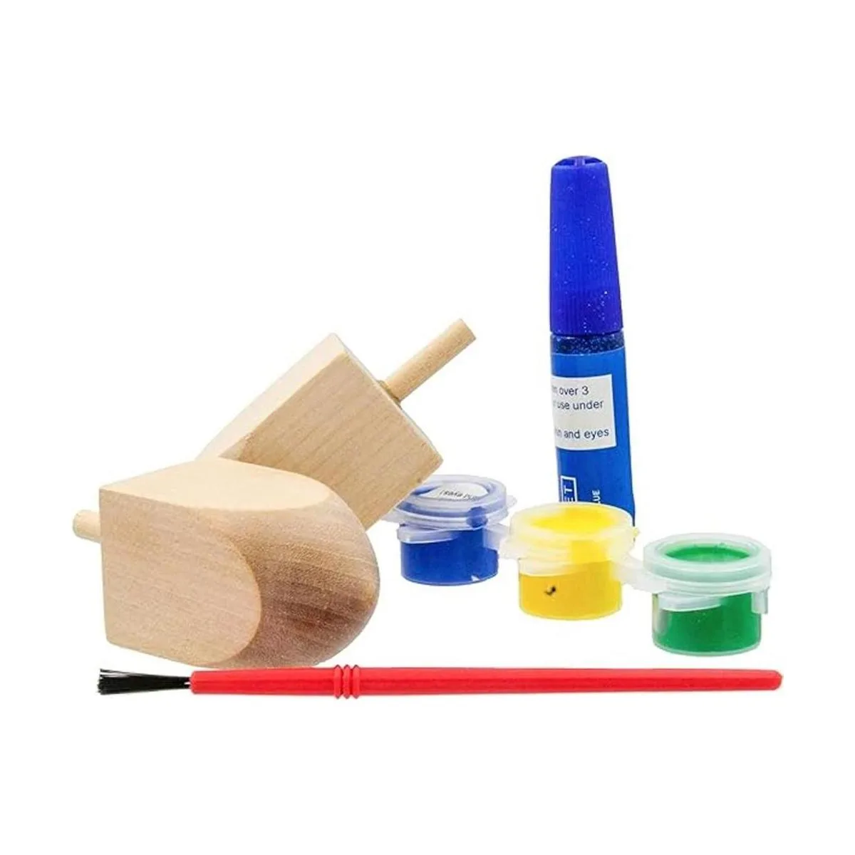 El kit incluye: 2 Dreidels de madera, 3 colores, 1 cepillo, 1 purpurina