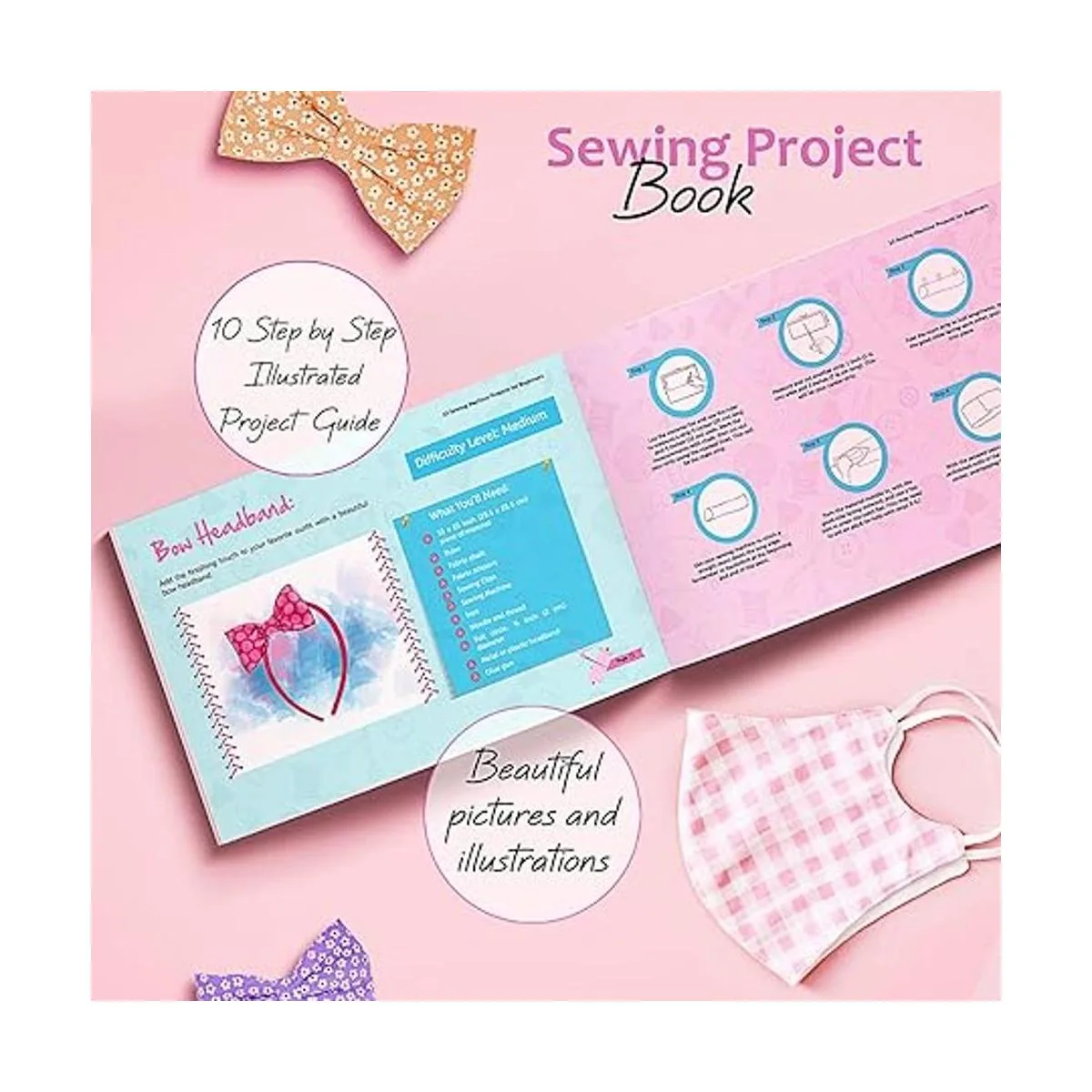 Libro de proyectos de costura: el libro bellamente ilustrado incluye proyectos de costura aptos para niños para niños, adolescentes y principiantes, con consejos y consejos, patrones de costura e instrucciones claras para 10 proyectos individuales, incluyendo accesorios para el cabello y decoración del hogar. Coser tus sueños con nuestra pequeña máquina de coser
