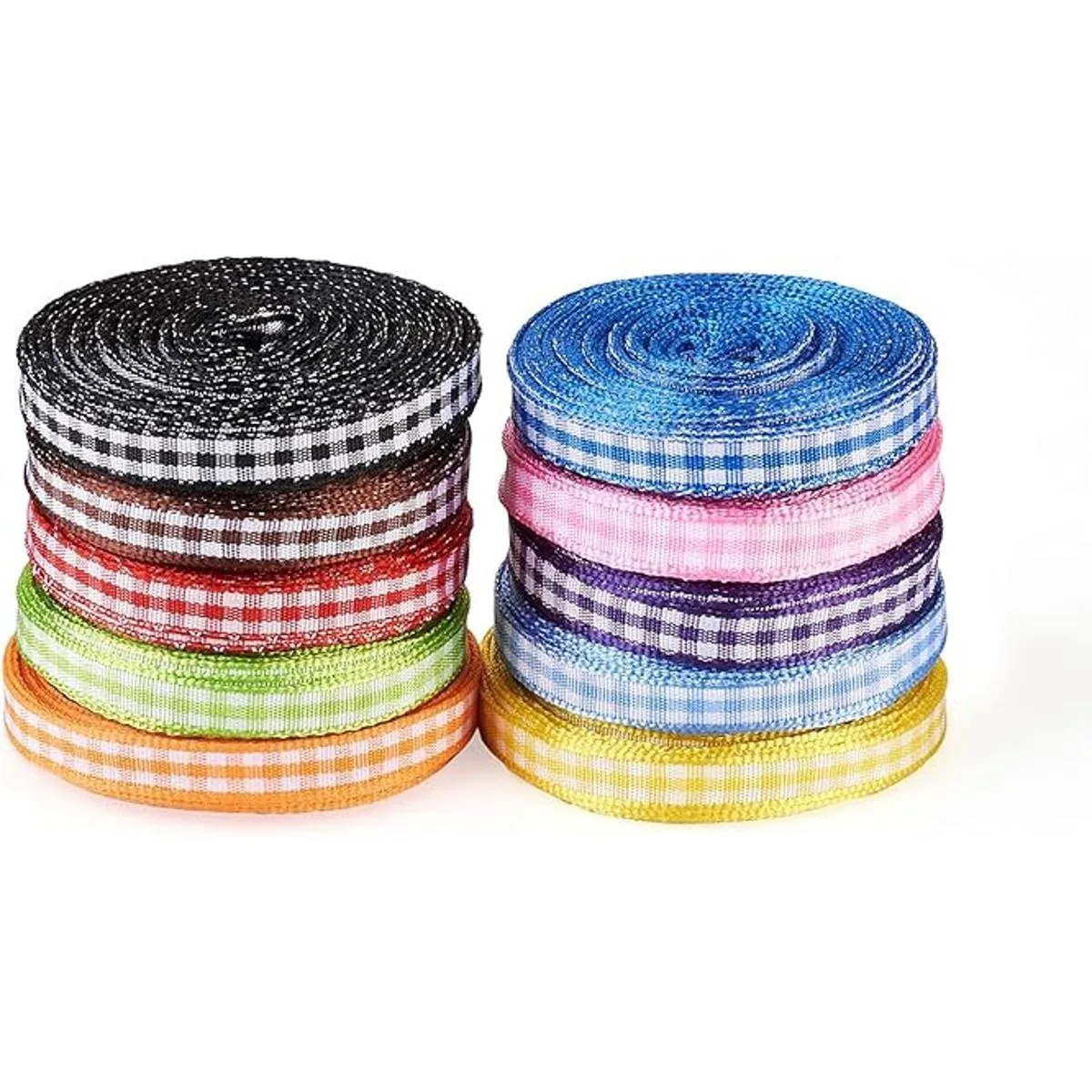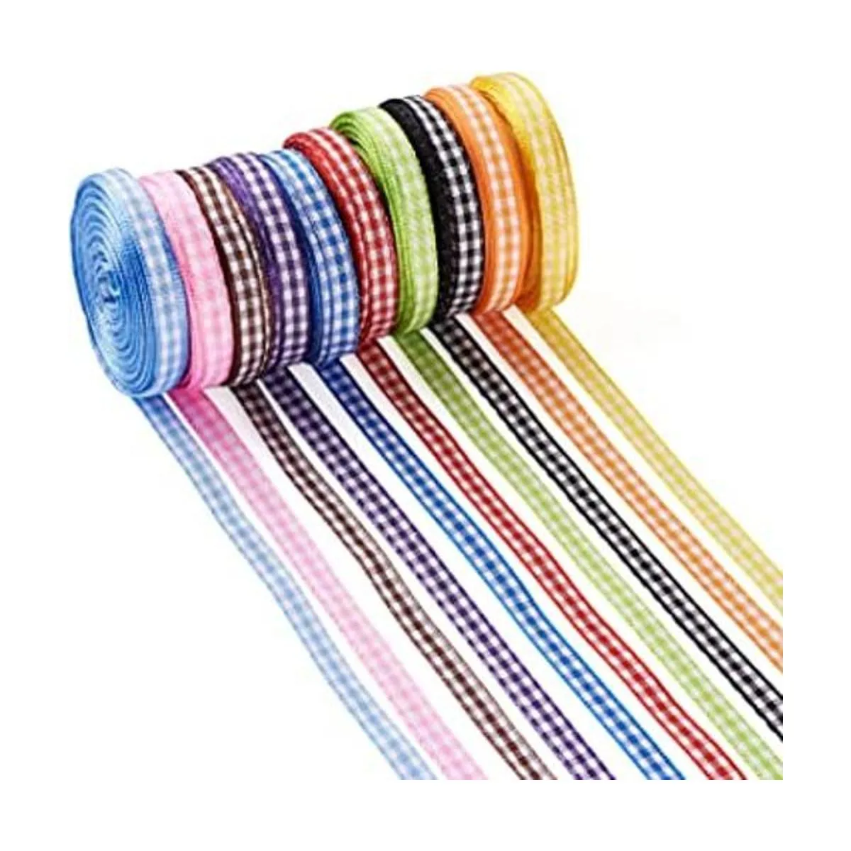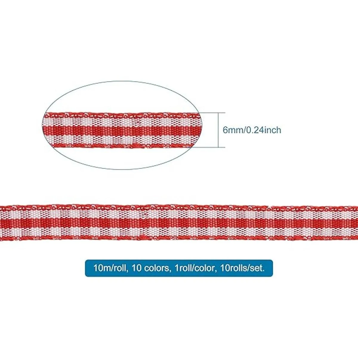 Craftdady 10 rollos de cinta de guinga a cuadros de 14 pulgadas, cinta de poliéster a cuadros para manualidades, lazos para el cabello, arreglos florales para decoración navideña, 10.9 yardasrollo