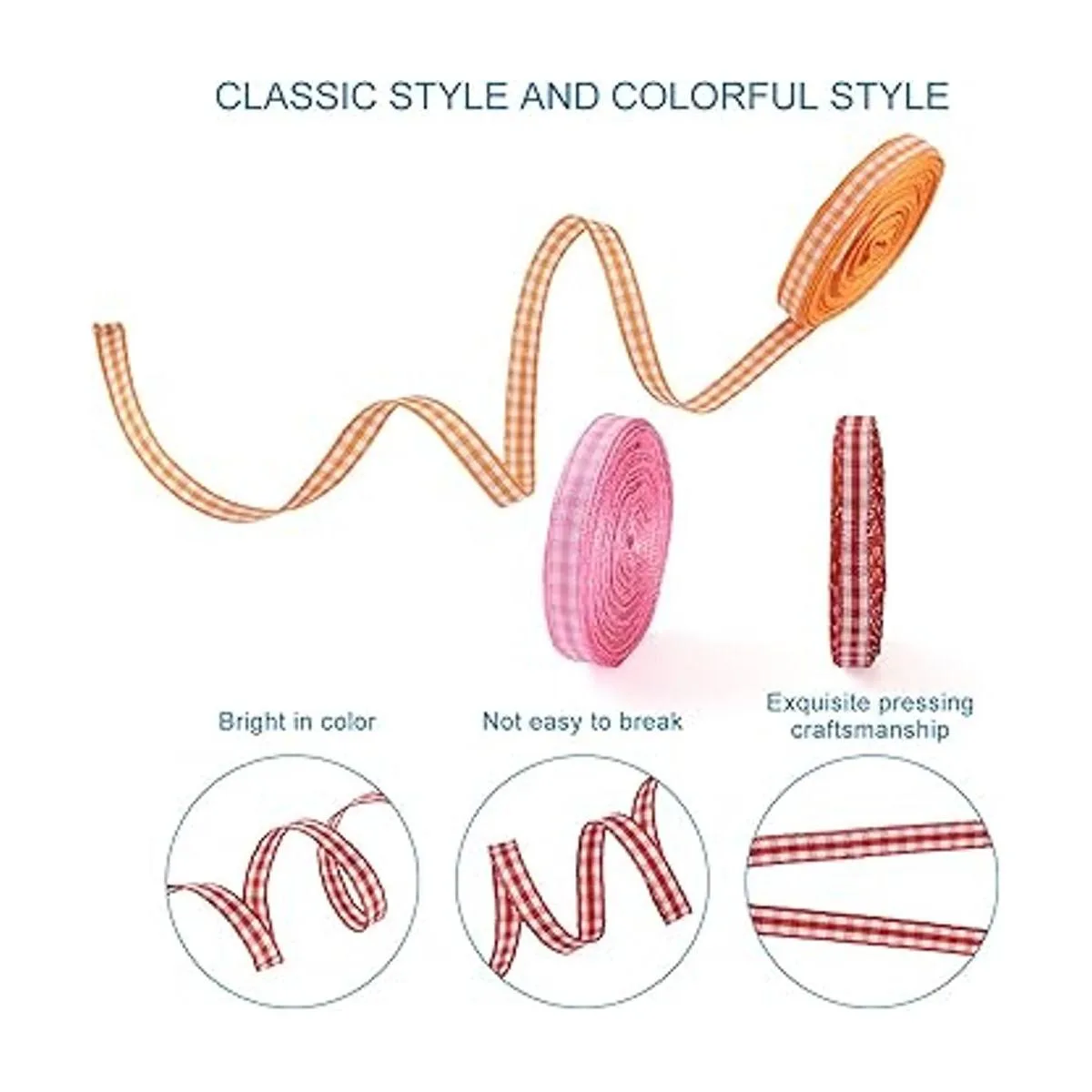 Amplia aplicación: las cintas de tela a cuadros son adecuadas para coser, decorar, encuadernar, álbumes de recortes, envolturas de regalos y arreglos florales. Se pueden utilizar para hacer varias manualidades como lazos para el cabello, diademas, guirnaldas, coronas de Navidad, accesorios de ropa, etc.
