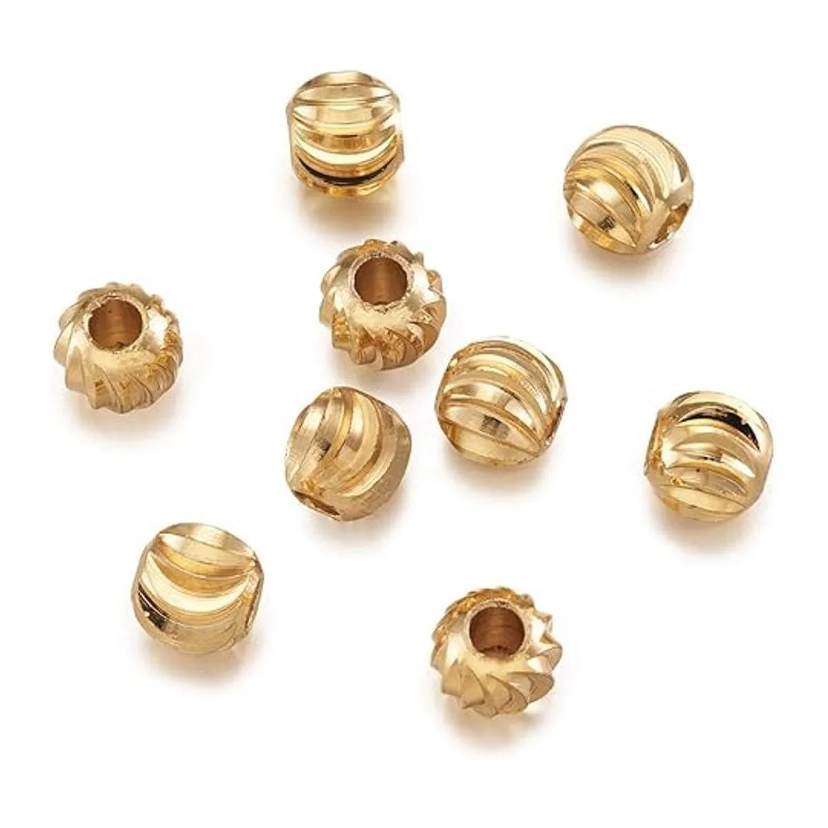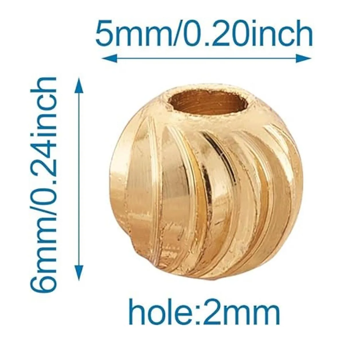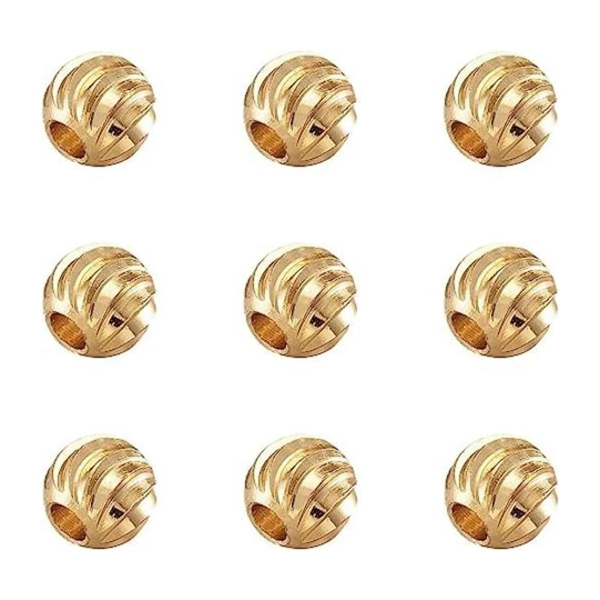 Diseños: estas cuentas tienen forma redonda ranurada, cuentan con un tono dorado real, brillante y atractivo, aportan un toque elegante a tus proyectos, hacen que tus diseños de joyas sean más llamativos.