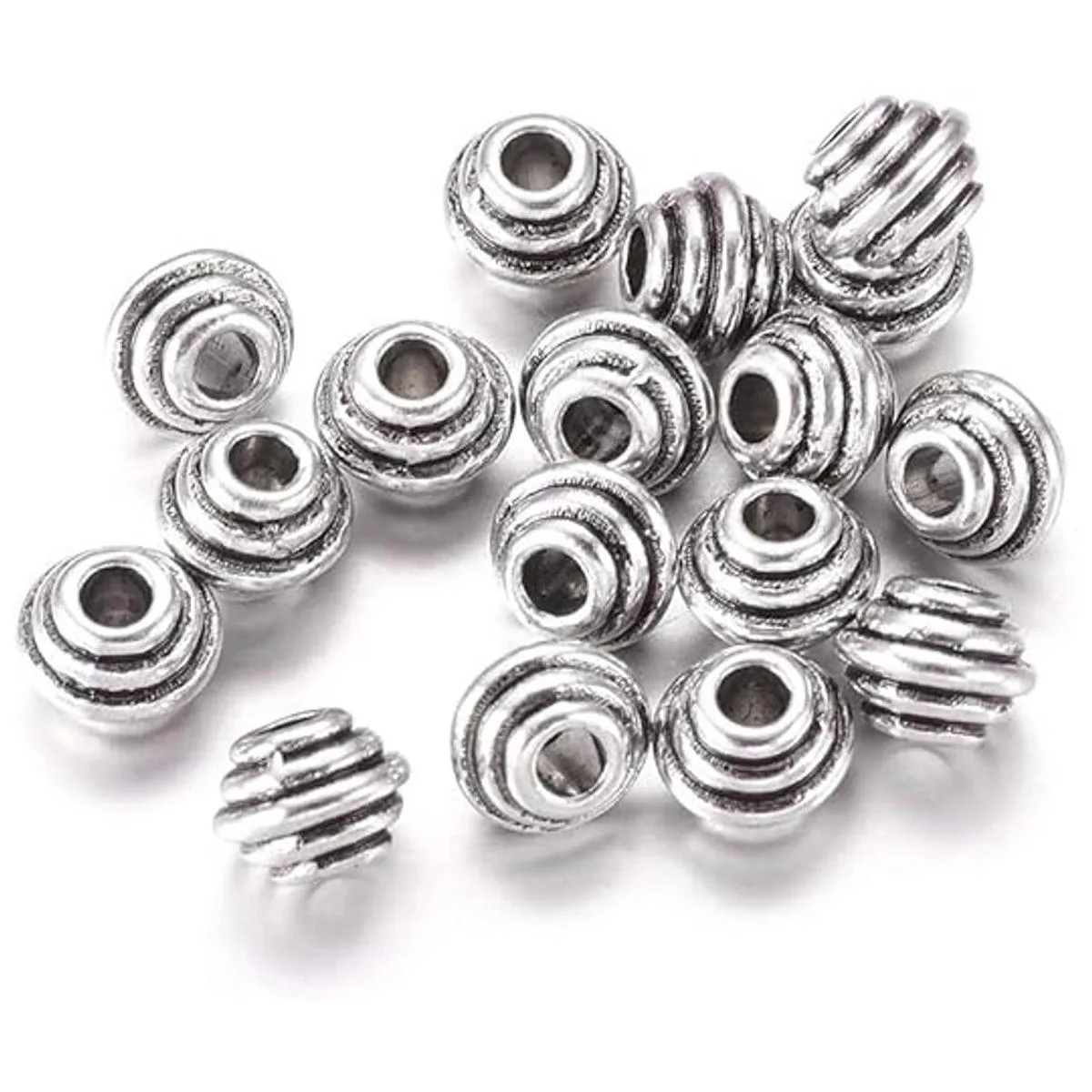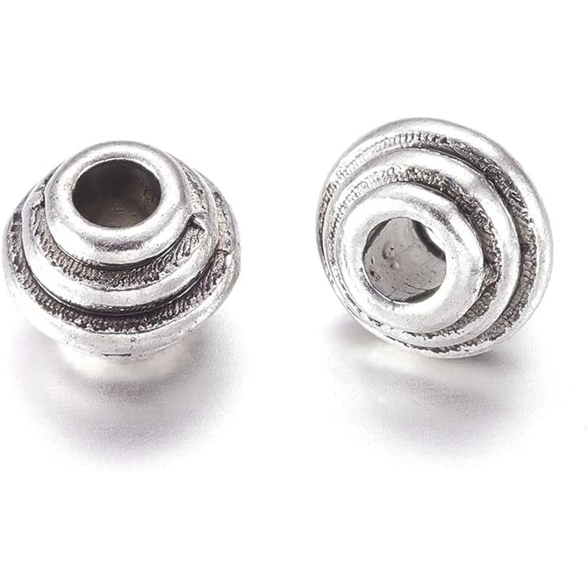Craftdady 50 cuentas espaciadoras de bicono de plata antigua de 0.197 x 0.256 in, cuentas sueltas de aleación de metal tibetano para hacer joyas y manualidades con agujero de 0.05 pulgadas