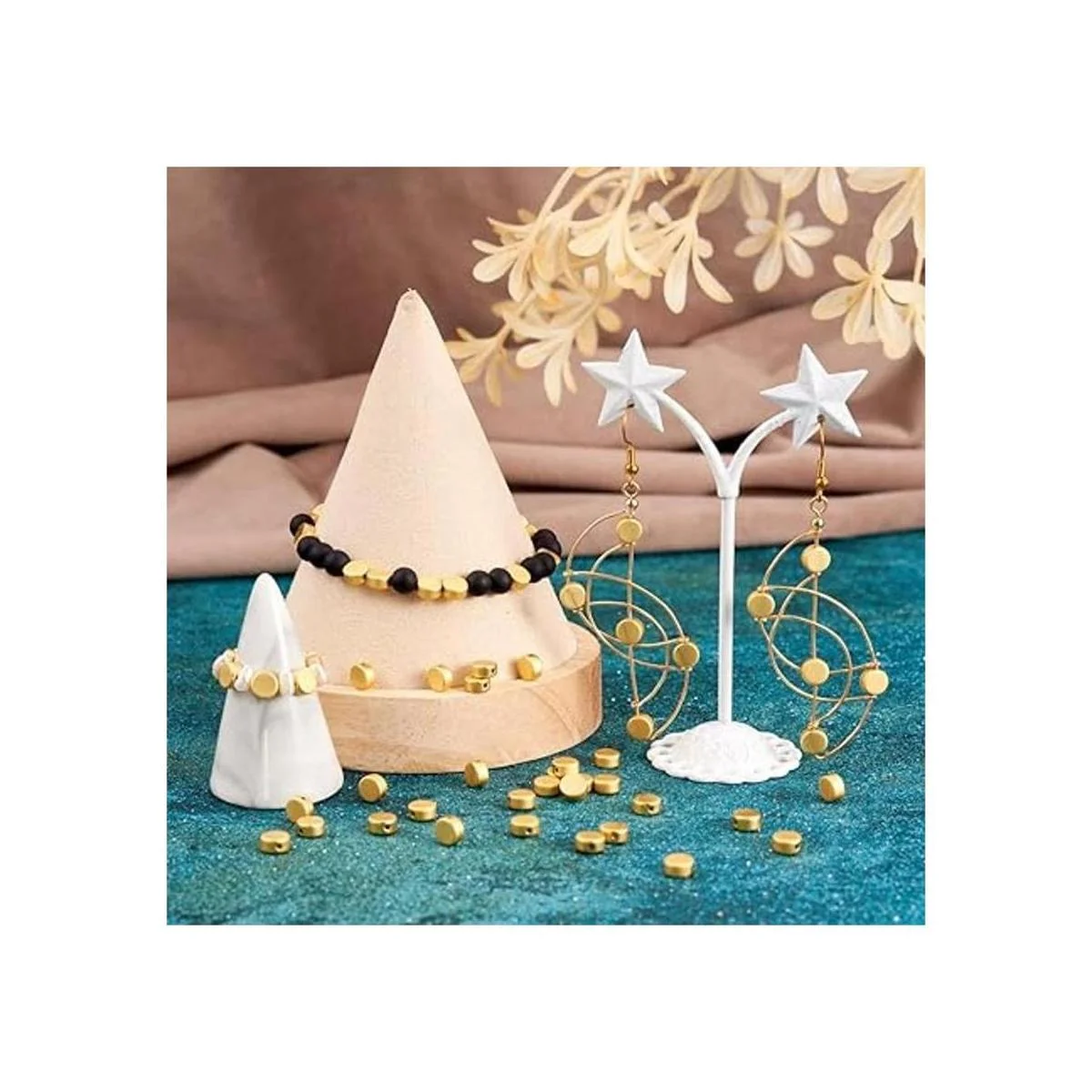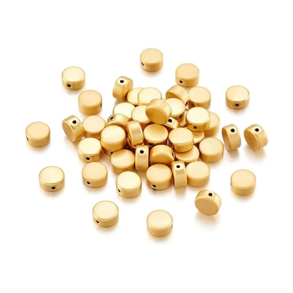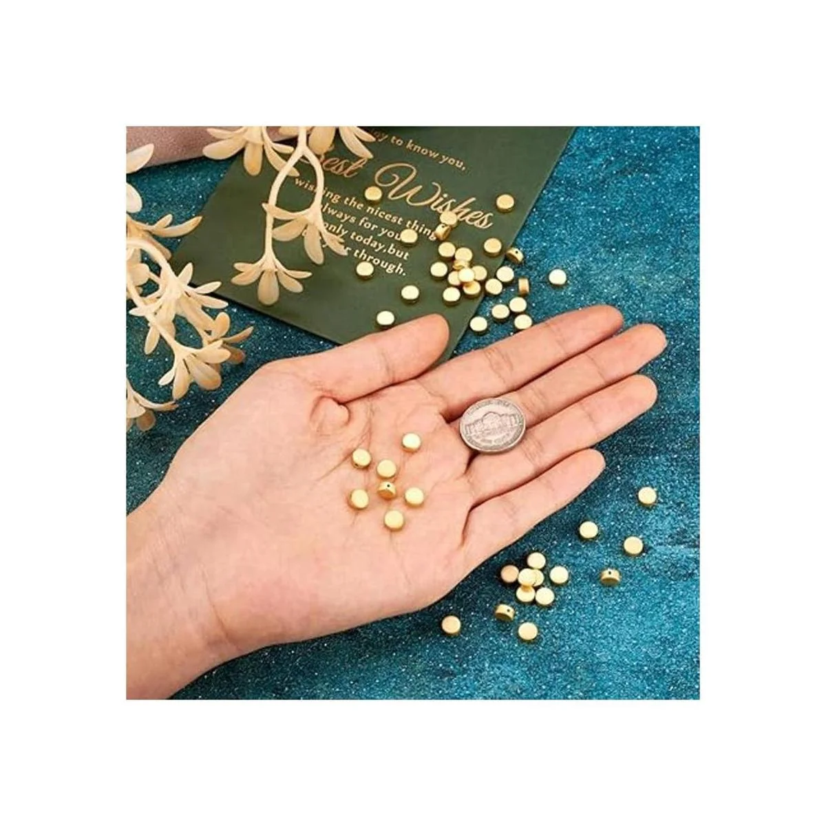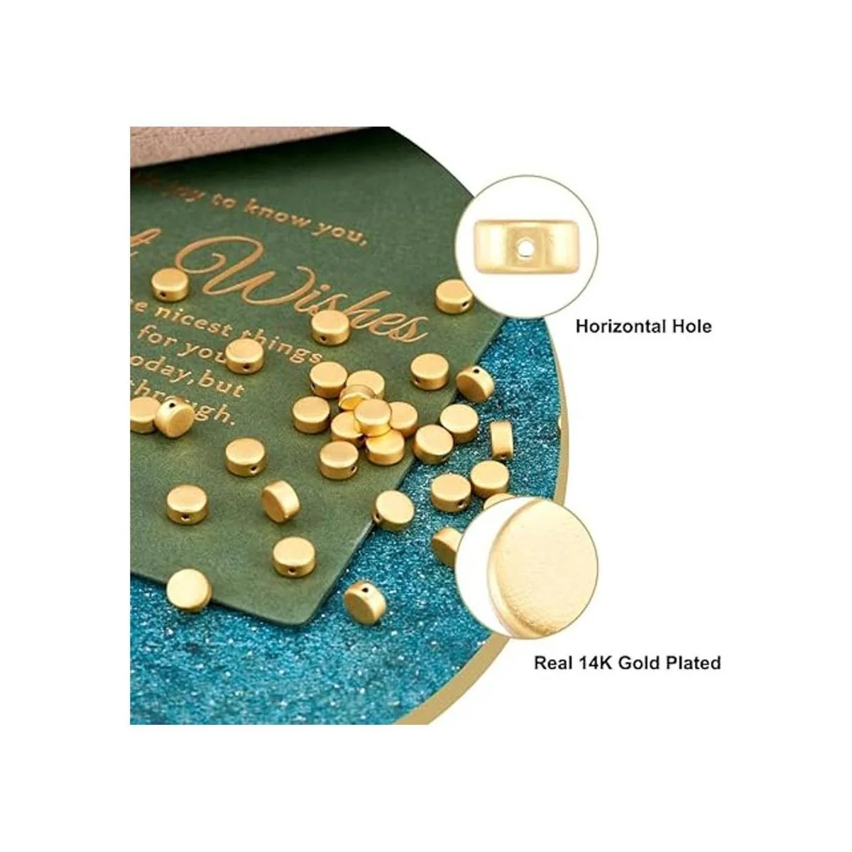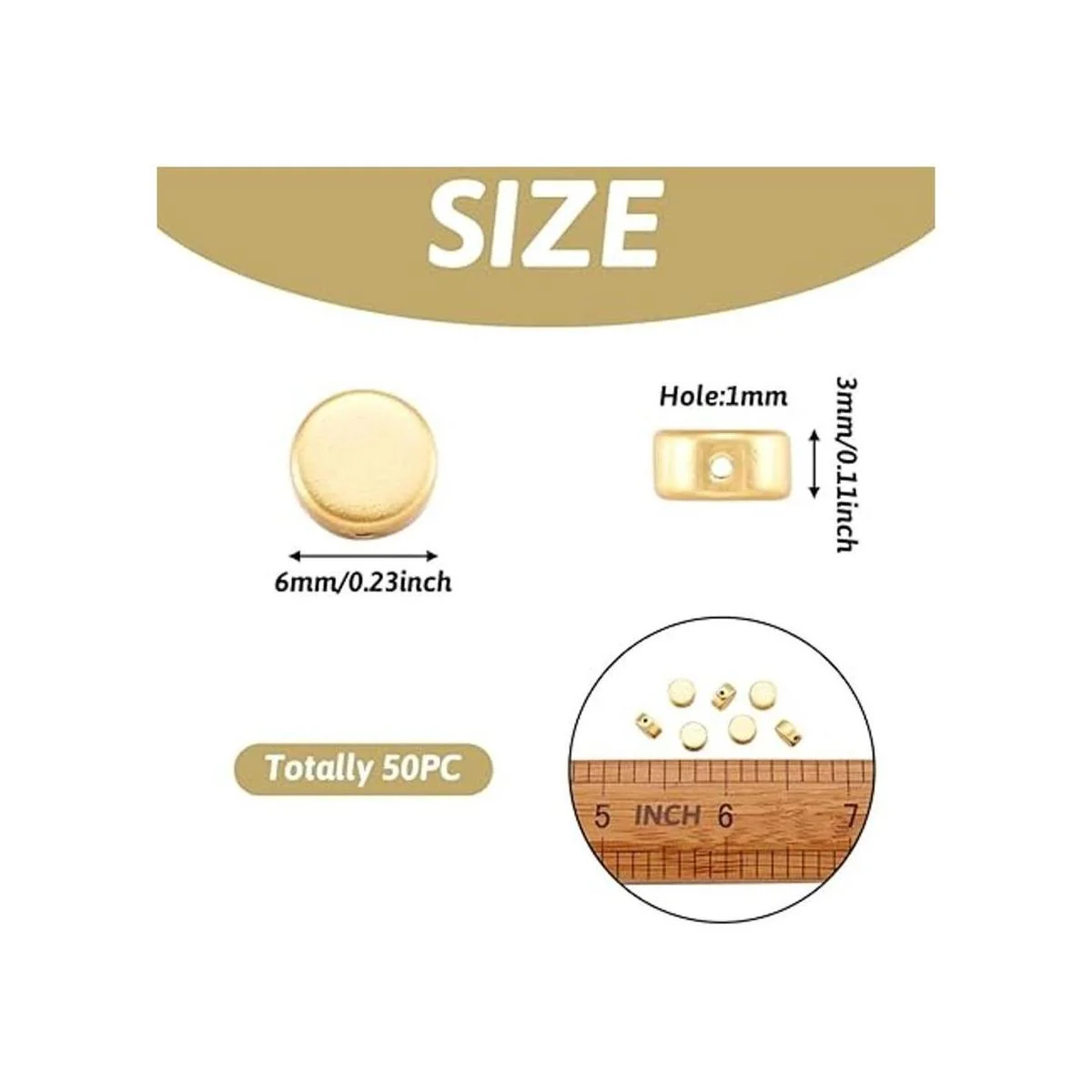 Craftdady 50 cuentas espaciadoras redondas planas de oro mate de 14 quilates texturizadas de latón sólido con disco de moneda diminutas cuentas sueltas de 0.236 x 0.118 in para pulseras, collares, joyería y agujero 0.03 pulgadas