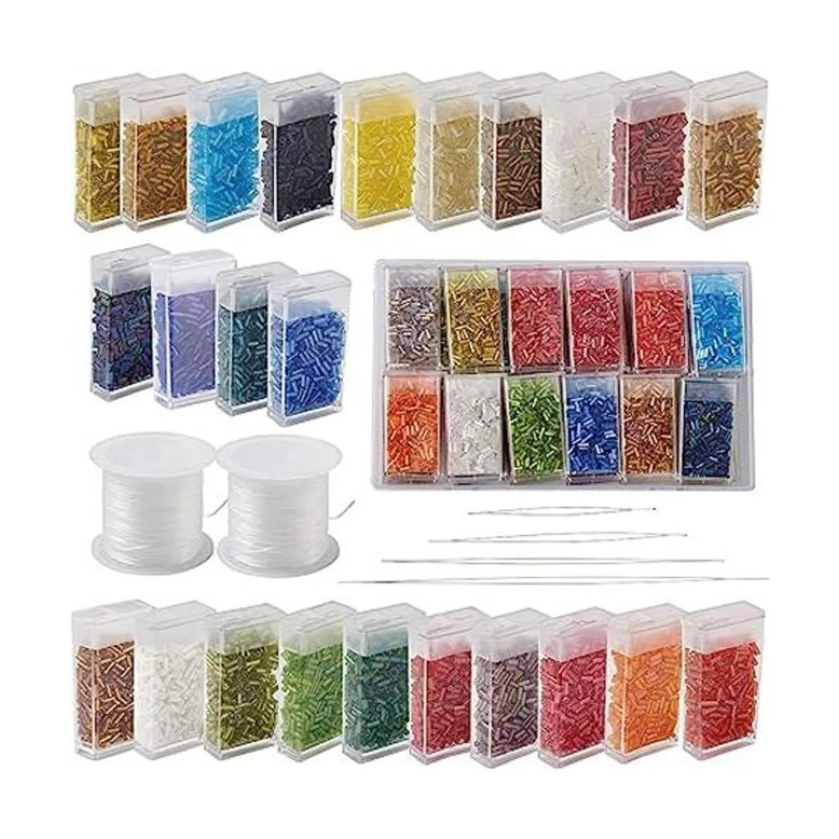 WHAT YOU GET About 266pc x 24 colors tube beads with containers, total approx 6400pcs/set; 1pc x 4 sizes big eye needles; 2 rolls crystal thread.