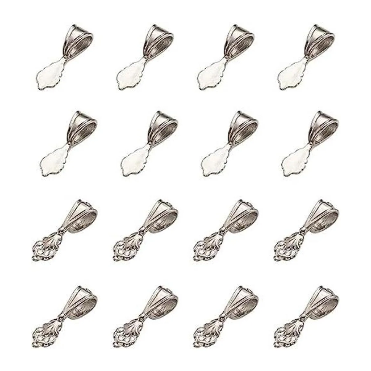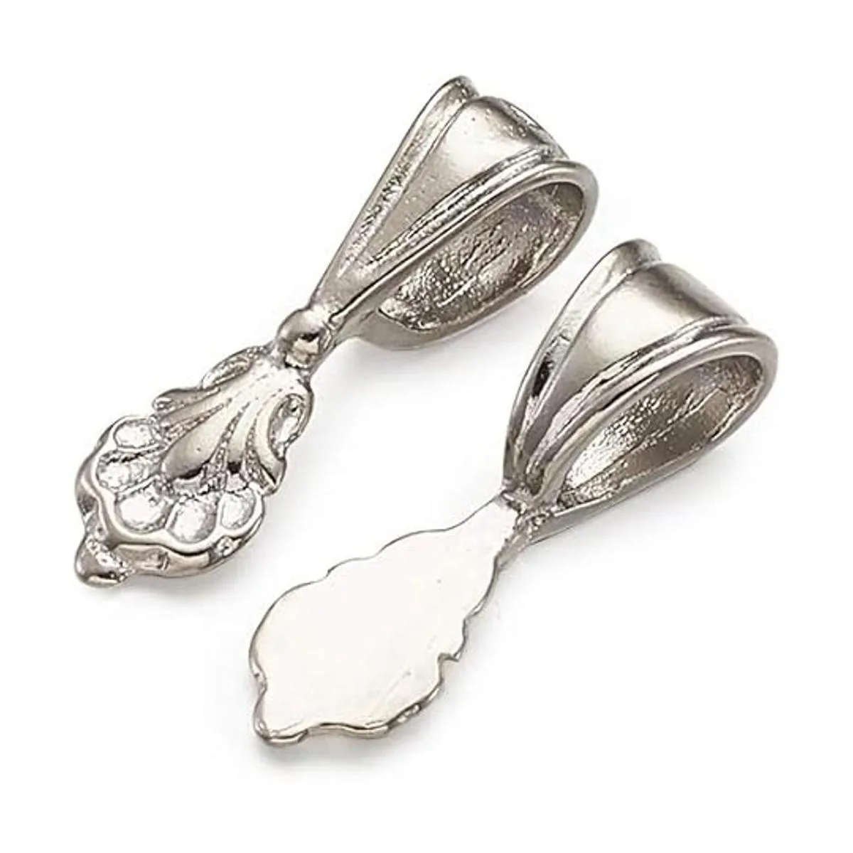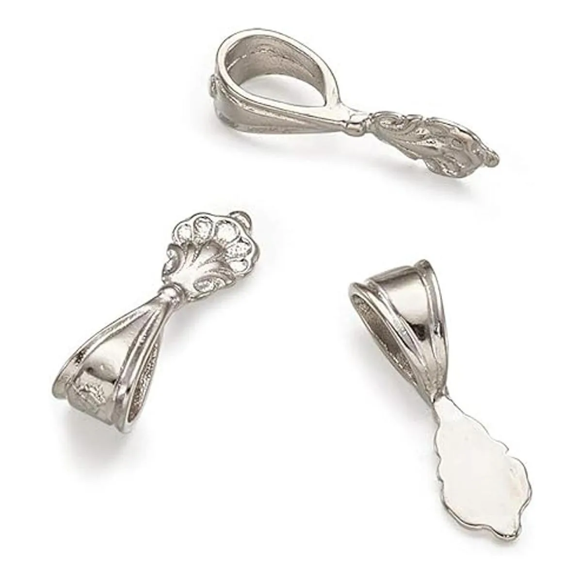 Material Made of highquality brass in platinum color. With these flat pad bails, you can glue your focal piece to make the instant without wire wrapping or drilling holes.