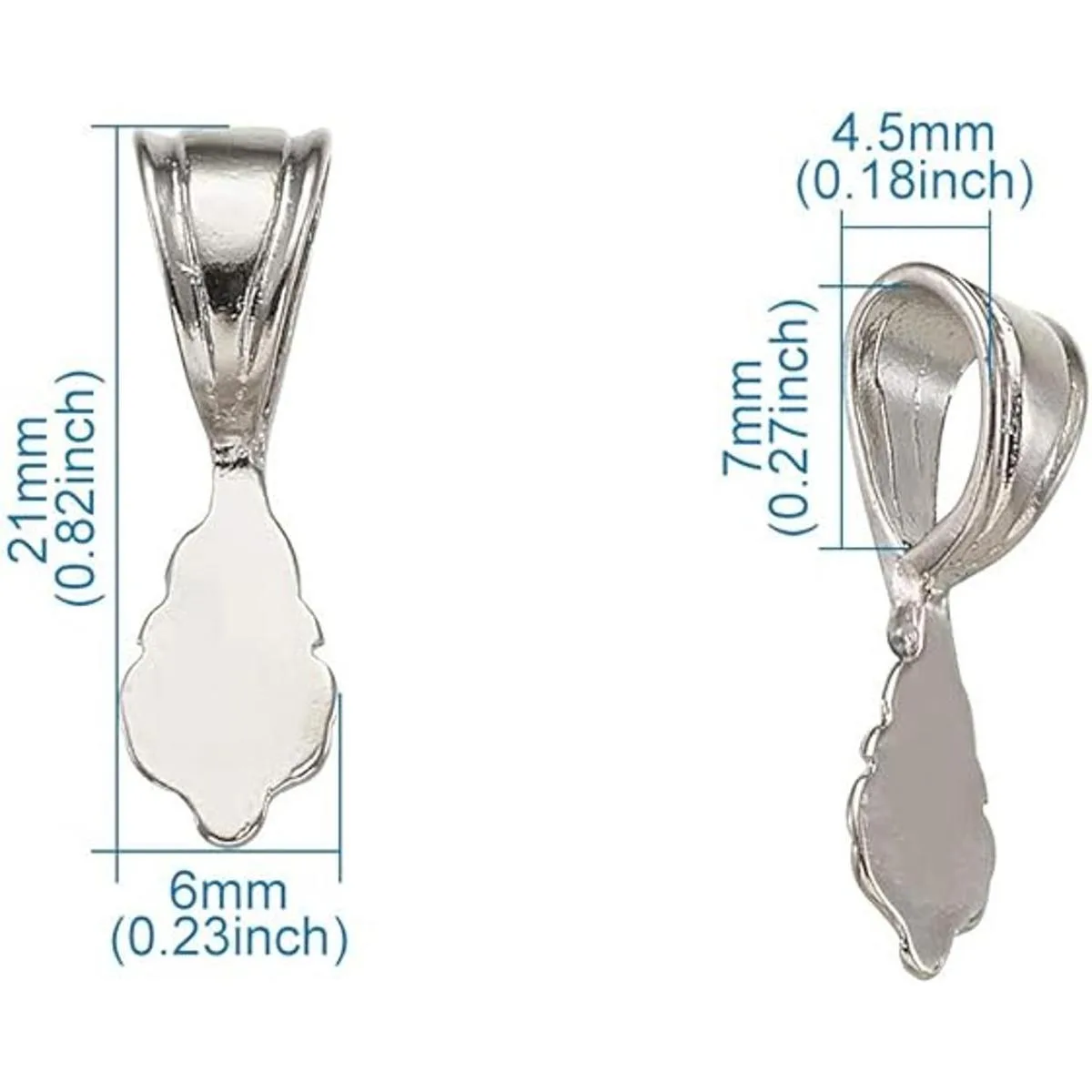 Package Includes 10pcs platinum pendant bails, about 6mm wide, 21mm long, 7mm thick, hole: 7×4.5mm.