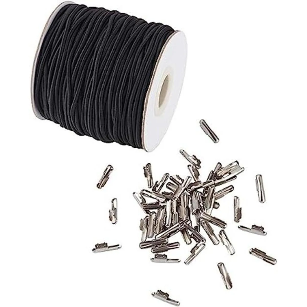 El paquete incluye: 1 rollo de cordones elásticos de 131.2 ft con 100 barras de metal. Color: negro.