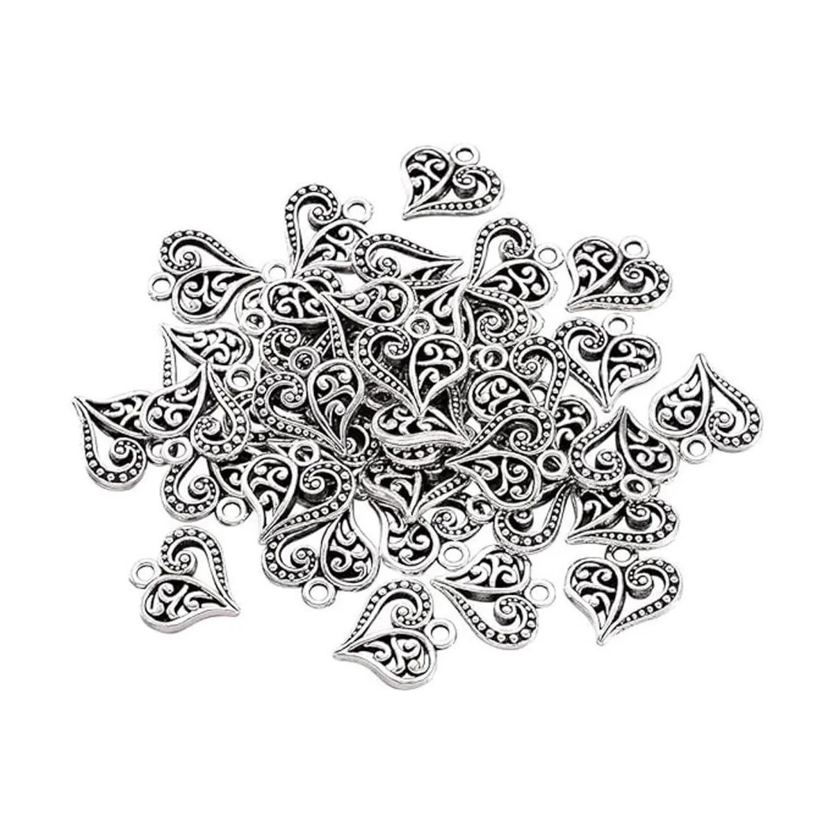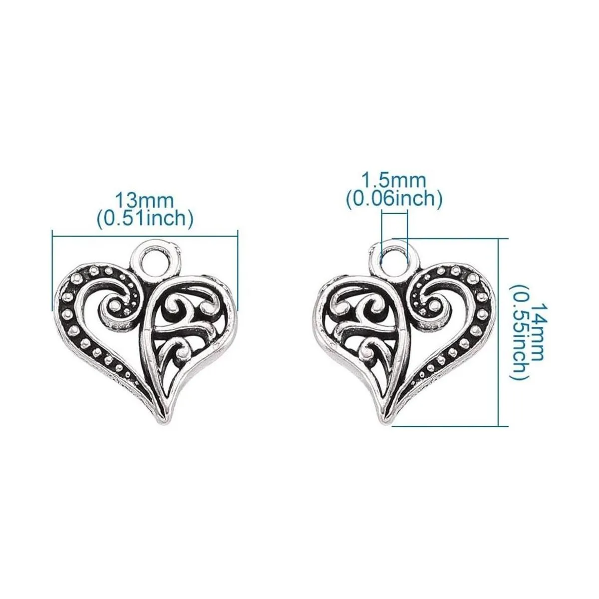 El paquete incluye: 50 dijes de corazón hueco con aproximadamente 0.551 in de largo, 0.512 in de ancho, 0.118 in de grosor, agujero: 0.059 in.