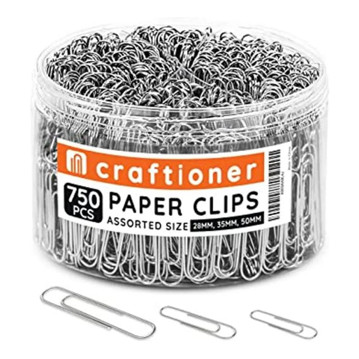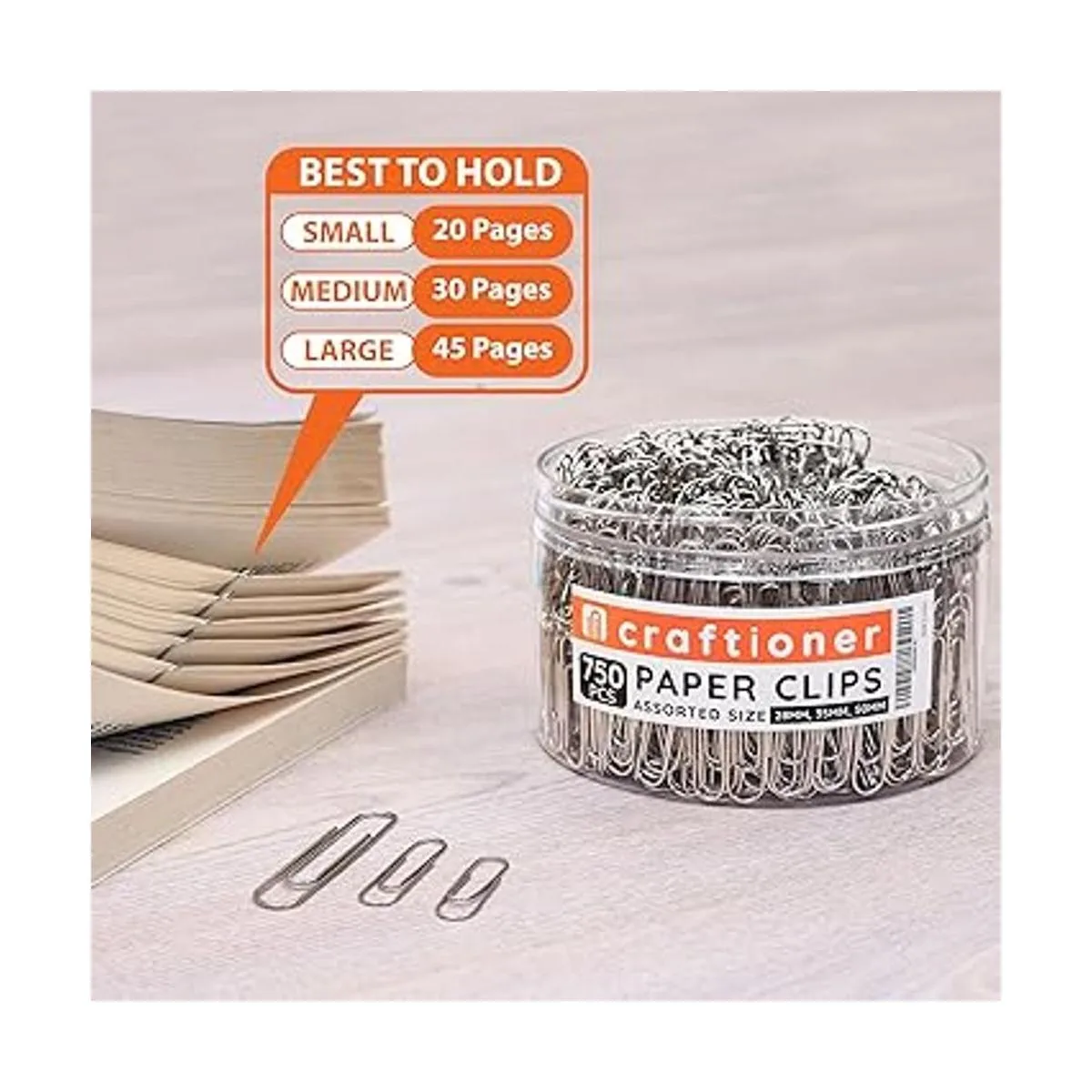 CRAFTIONER Clips de papel de varios tamaños, clips de papel pequeños, medianos y grandes, clips recubiertos de níquel para suministros de oficina, gestión de papel en el hogar, escuelas y oficinas (750, plateado)